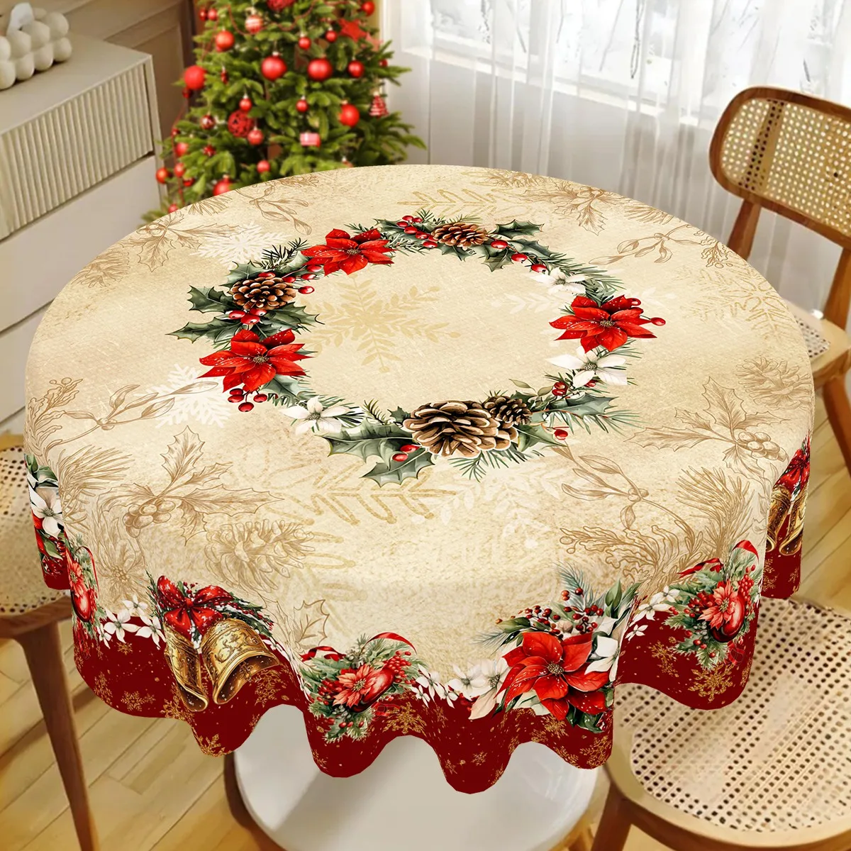 Christmas Bell Poinsettia Tablecloth Dining Table Covers Christmas Decorations for Home 2025 Xmas Gifts Navidad New Year 2026