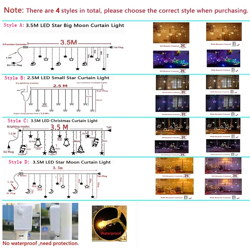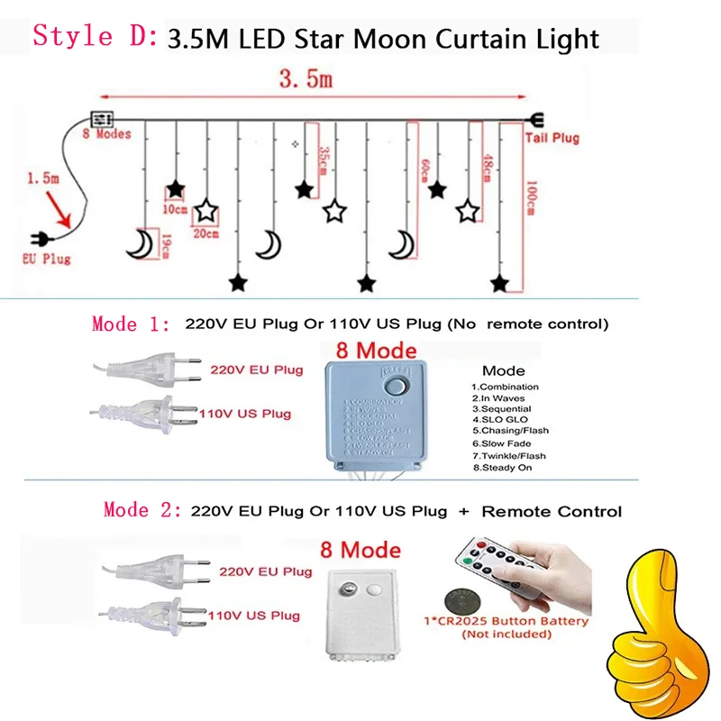 Style A : 3.5M LED Star Big Moon Curtain Light