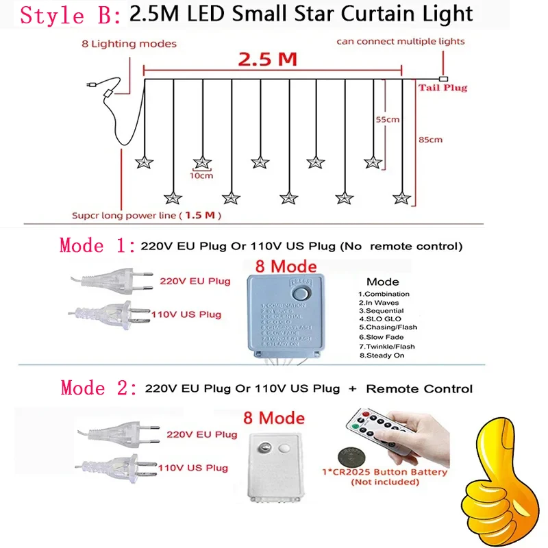 Mode B:    220V EU Plug Or 110V  US Plug + Remote Control