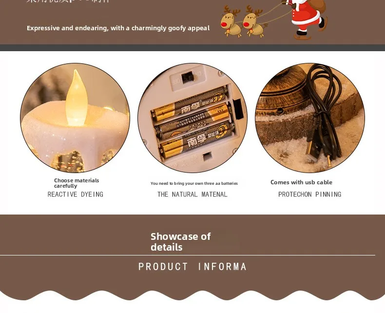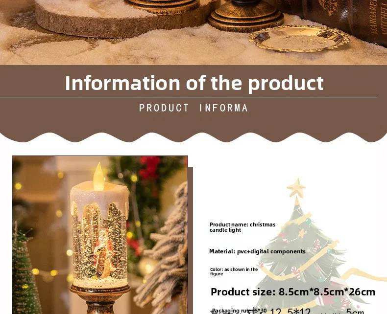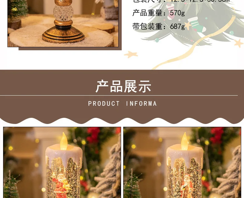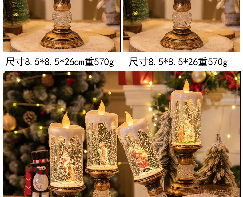Christmas decorations: candles, crystal lights, cartoon snowflakes, birthday and Christmas gifts, scene setups