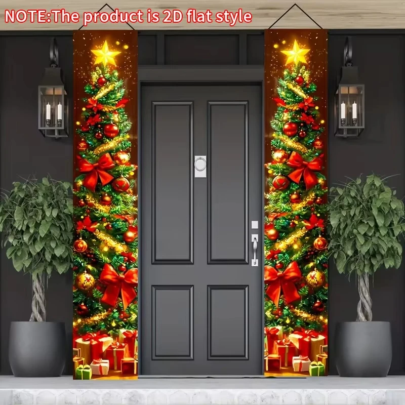Christmas decorative Christmas tree couplet banners, suitable for outdoor and indoor doorwayuse,Christmas Party Decorations