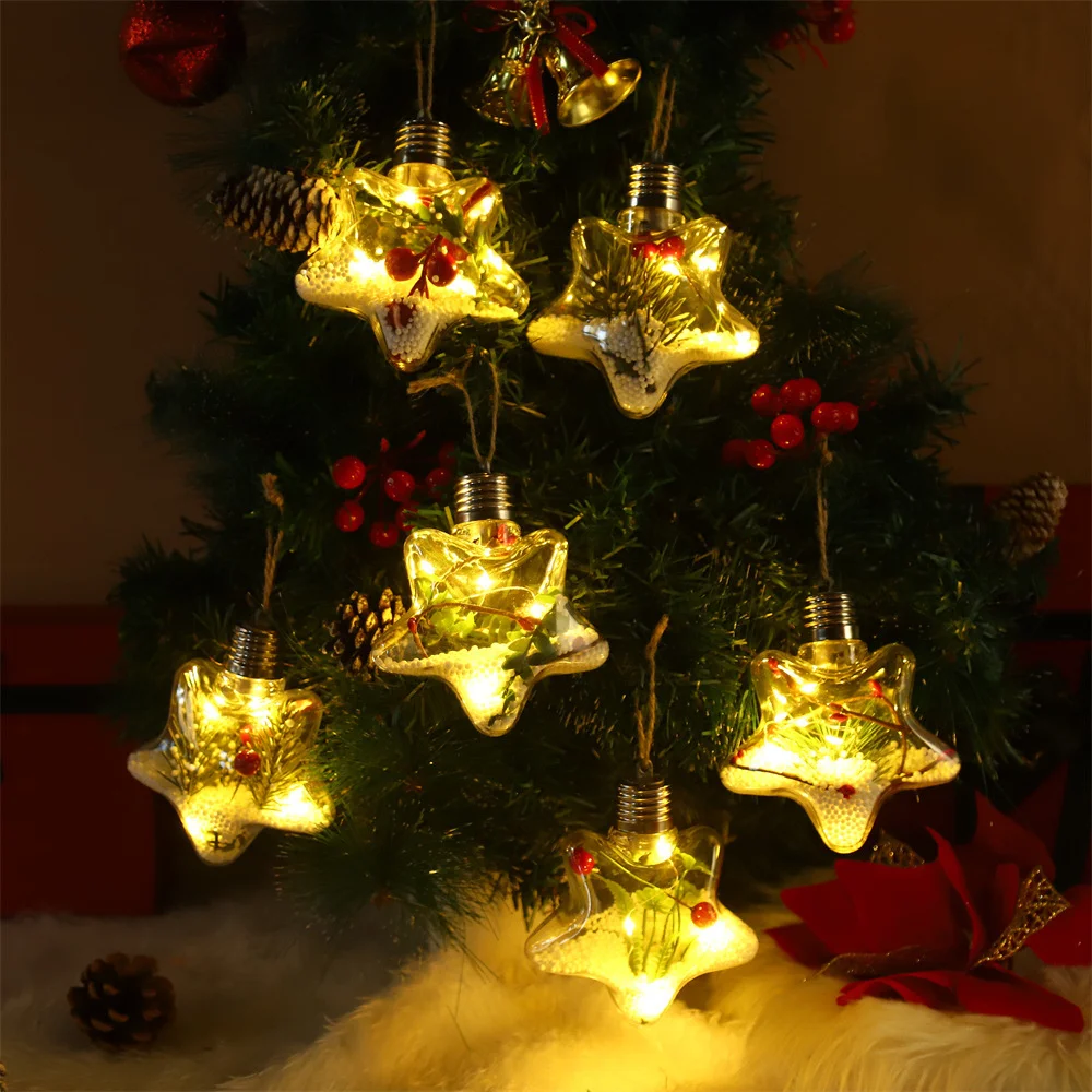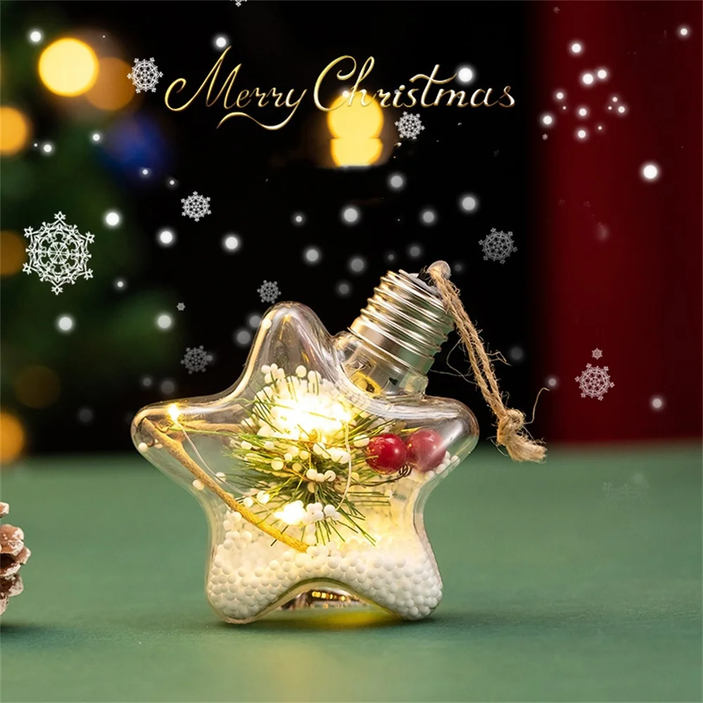 Christmas LED Star Bulb Decorative Hanging Light Christmas Ornaments Home Party Wedding New Year’s Decor Transparent Night Lamp