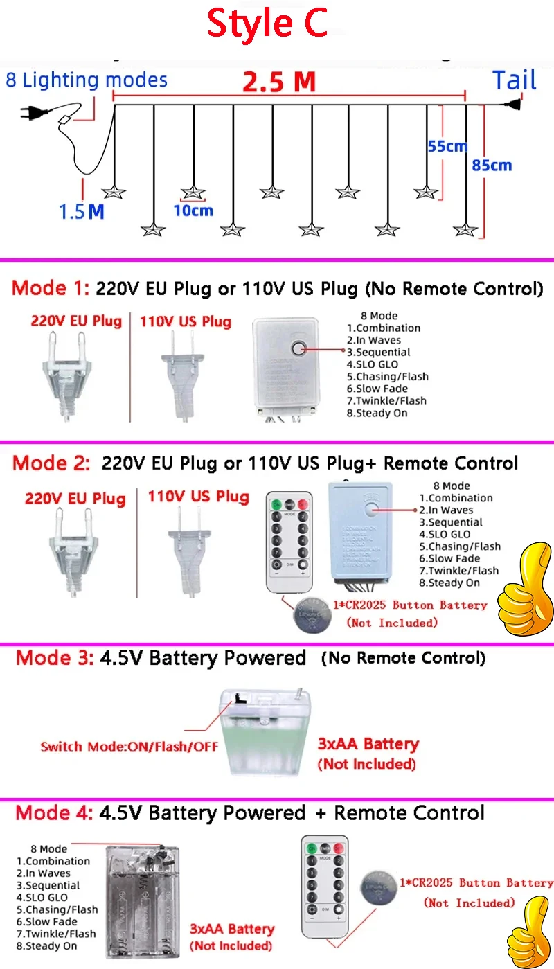 Mode -2 :      220V EU Plug Or 110V  US Plug + Remote Control