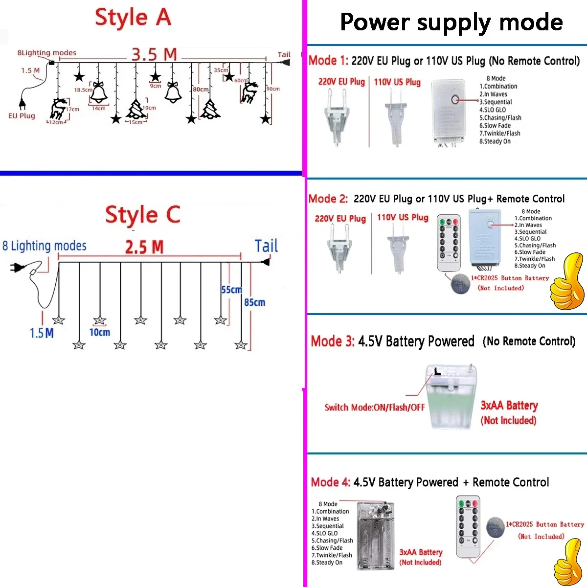 Mode -2 :      220V EU Plug Or 110V  US Plug + Remote Control