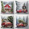 Christmas Pillowcases: Red Truck & Snowy Cottage Christmas Scenes Sofa room decoration New Year holiday home decoration