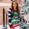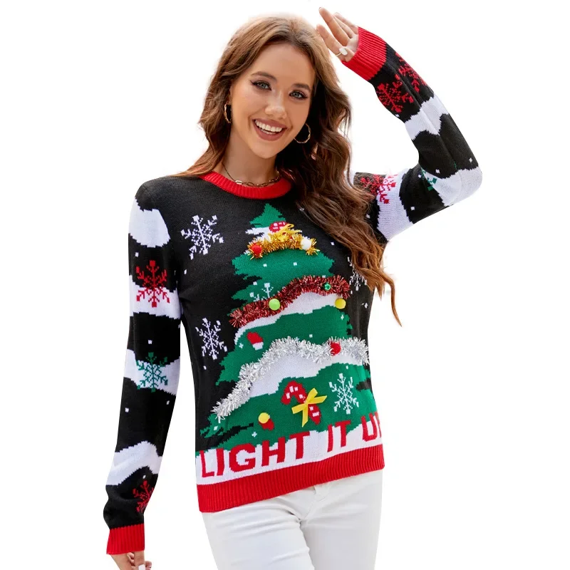 欧美跨境女装 卡通圆领毛衣 圣诞毛衣 圆领针织衫 圣诞树毛衣 圣