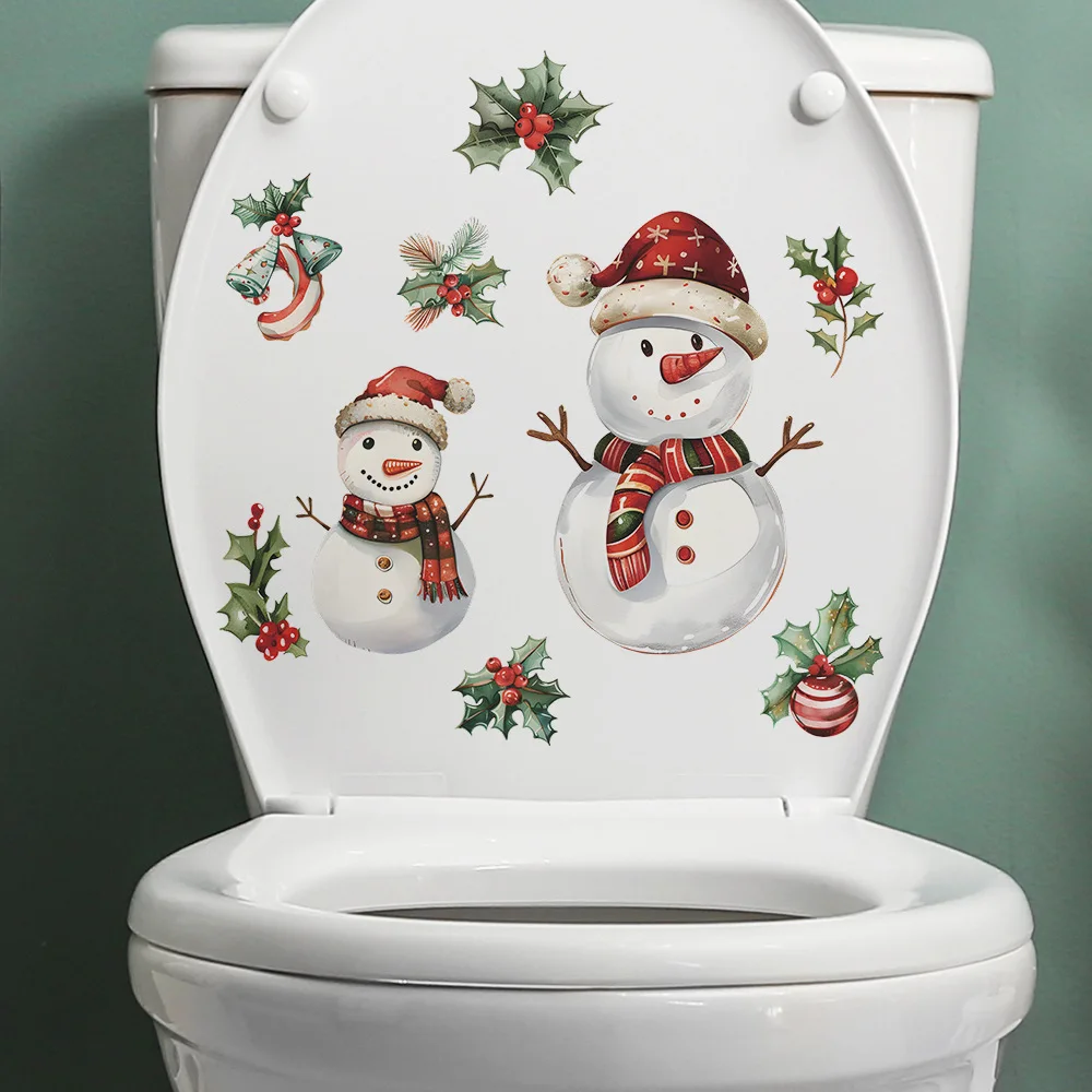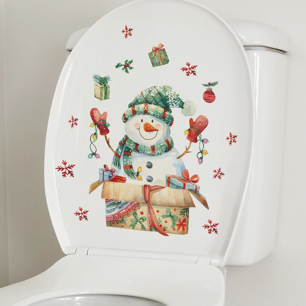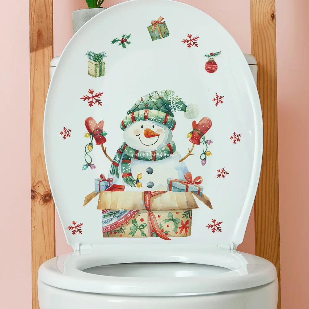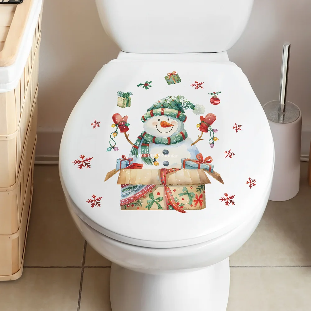 Christmas Toilet Stickers Funny Christmas Snowman Wall Stickers Toilet Decor Bathroom WC Self Adhesive Christmas Decal Stickers