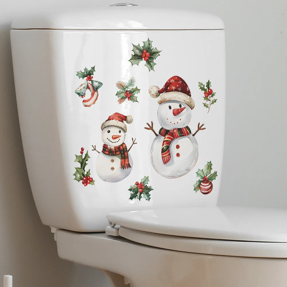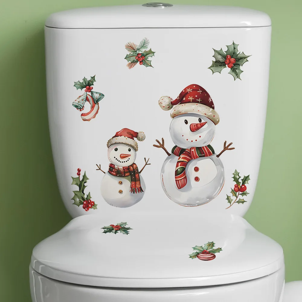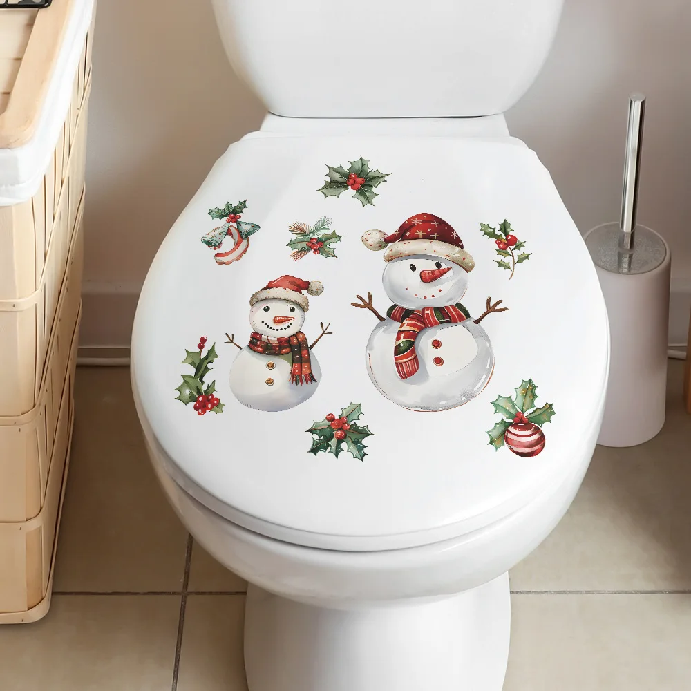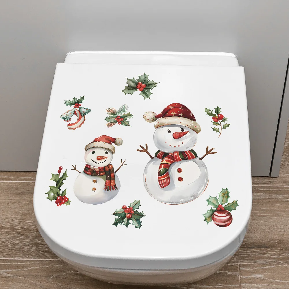 Christmas Toilet Stickers Funny Christmas Snowman Wall Stickers Toilet Decor Bathroom WC Self Adhesive Christmas Decal Stickers