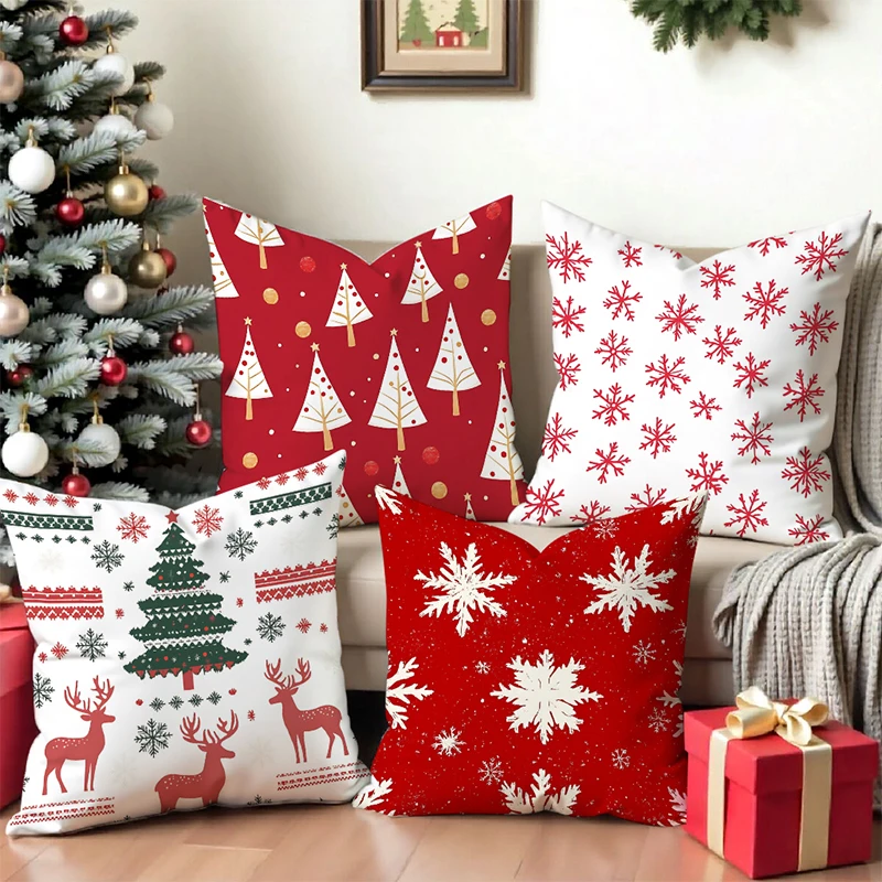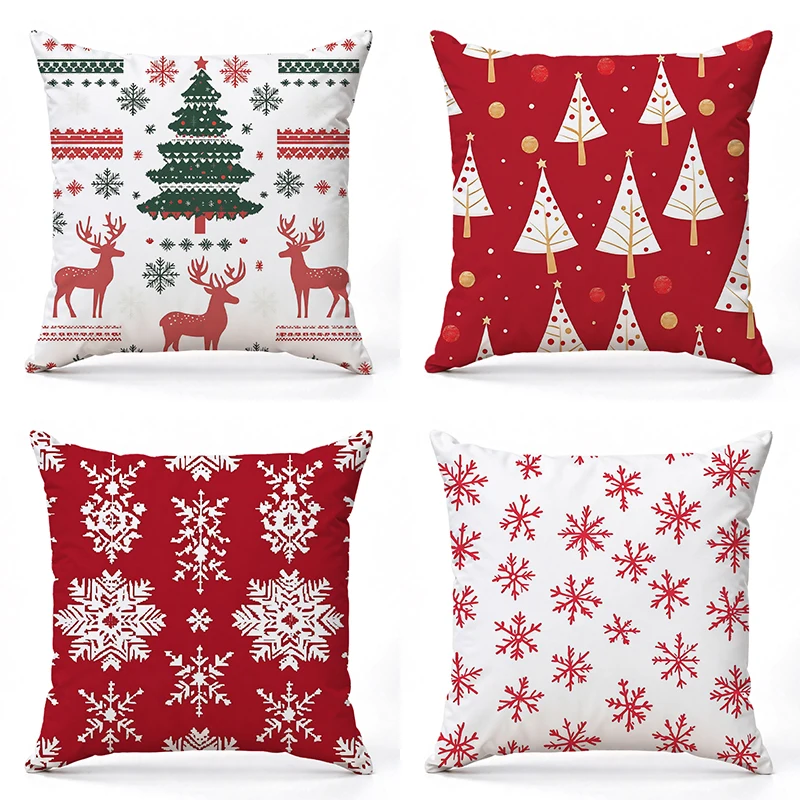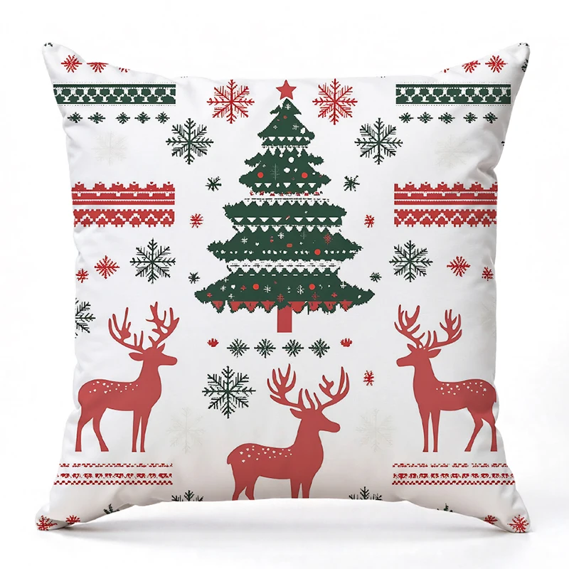 Christmas Tree Deer Snowflake Pattern Pillows Square polyester pillowcase, modern sofa decorative cushion cover
