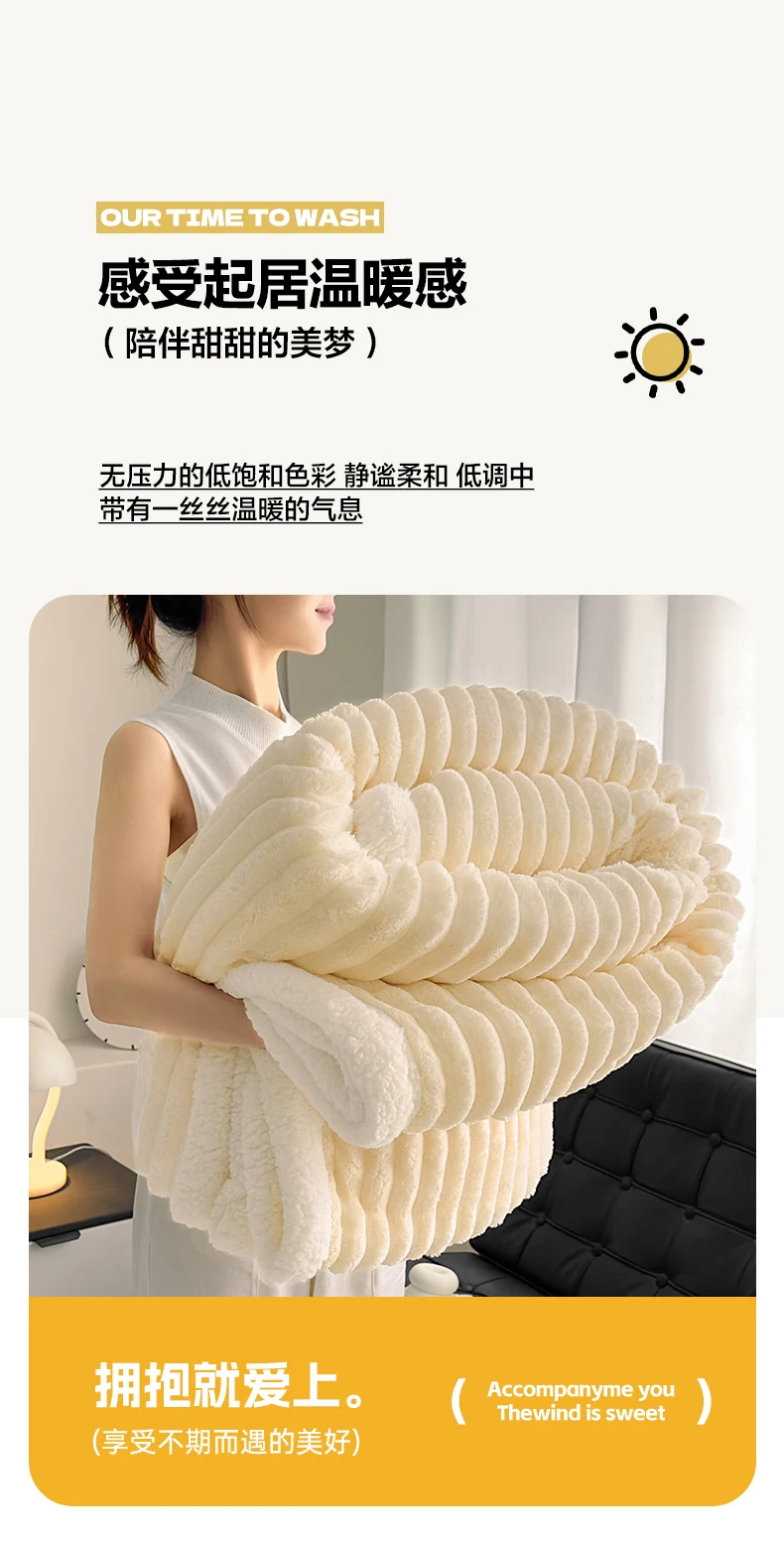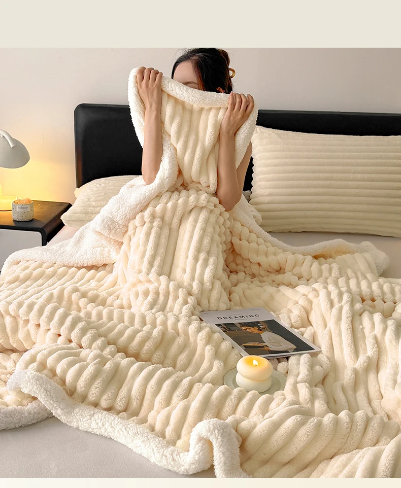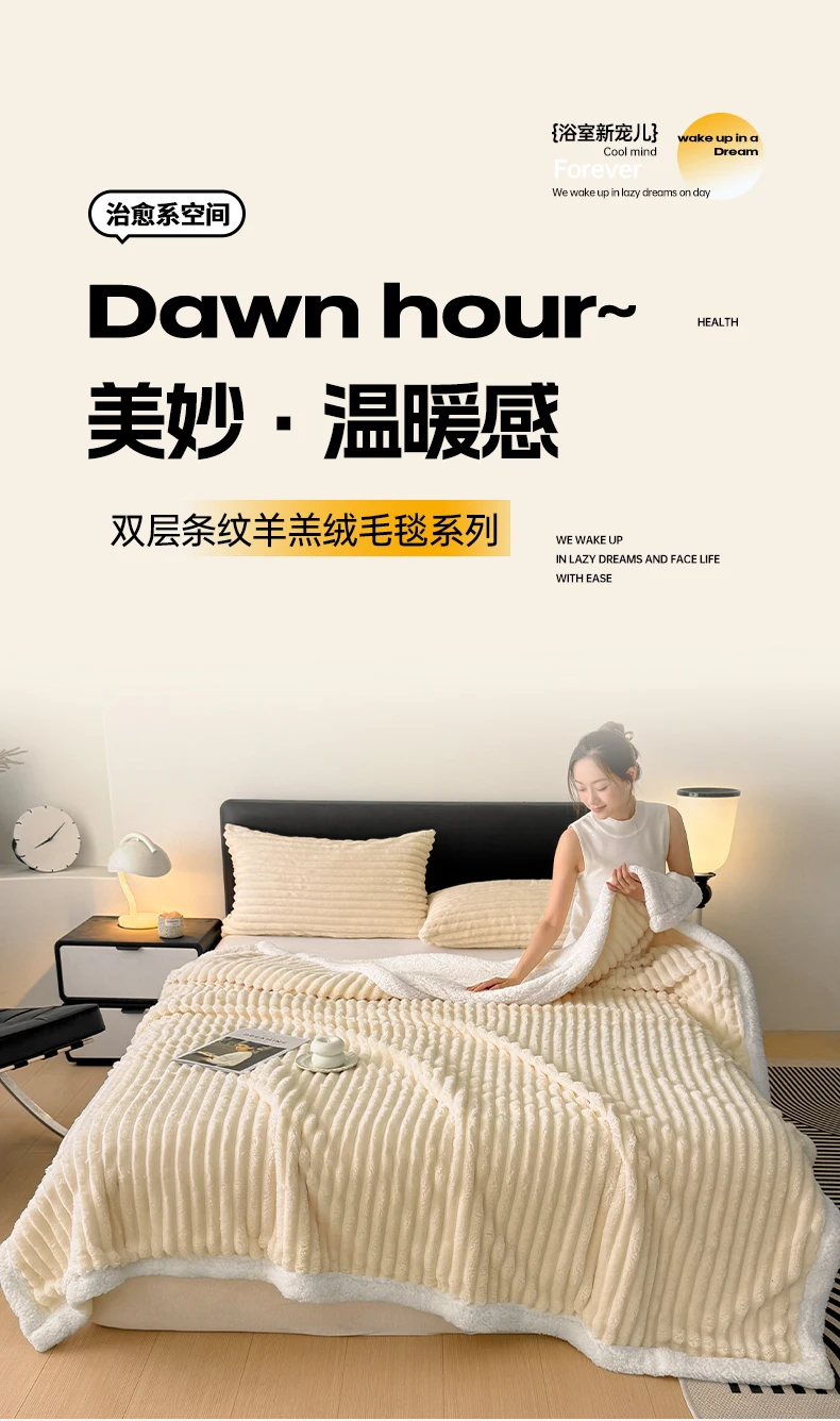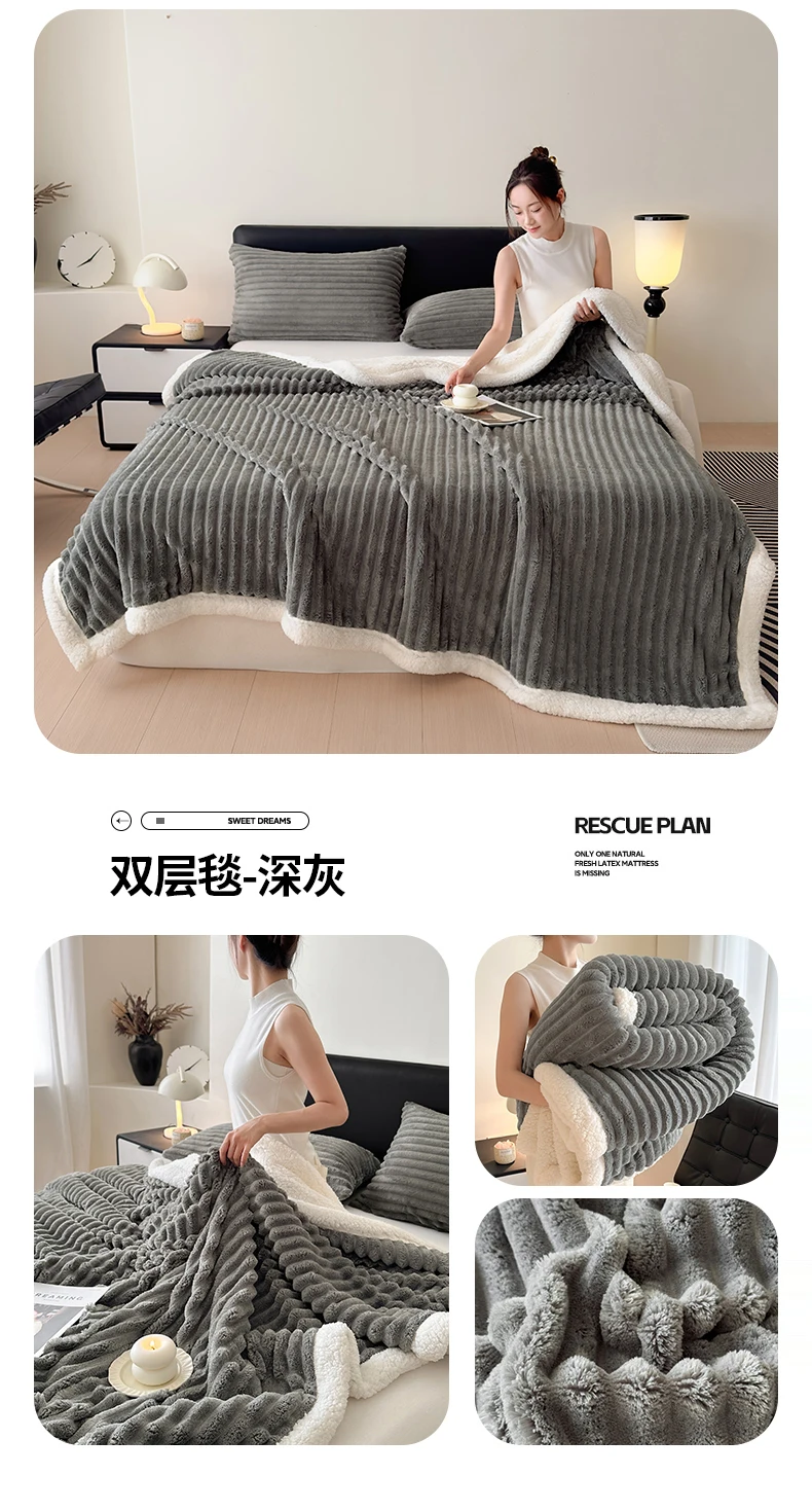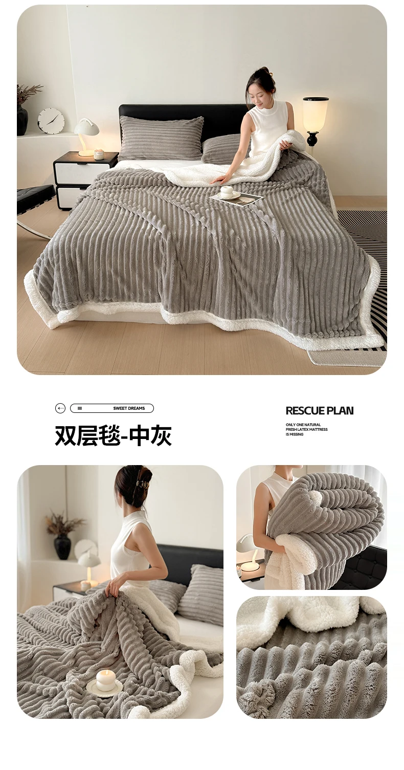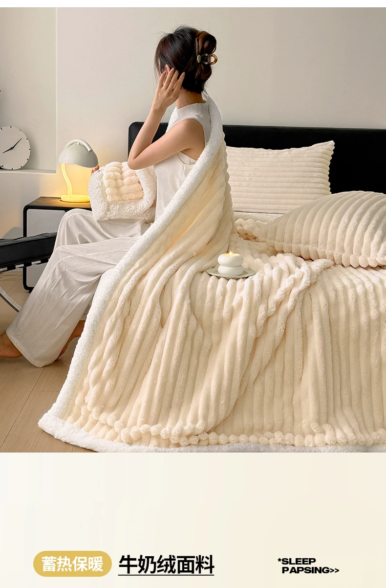 Cozy Fluffy Coral Fleece Blanket Thick Warm Striped Winter Duvets Soft Plush Sofa Throw Blanket Queen Bedroom Bedspread for Home