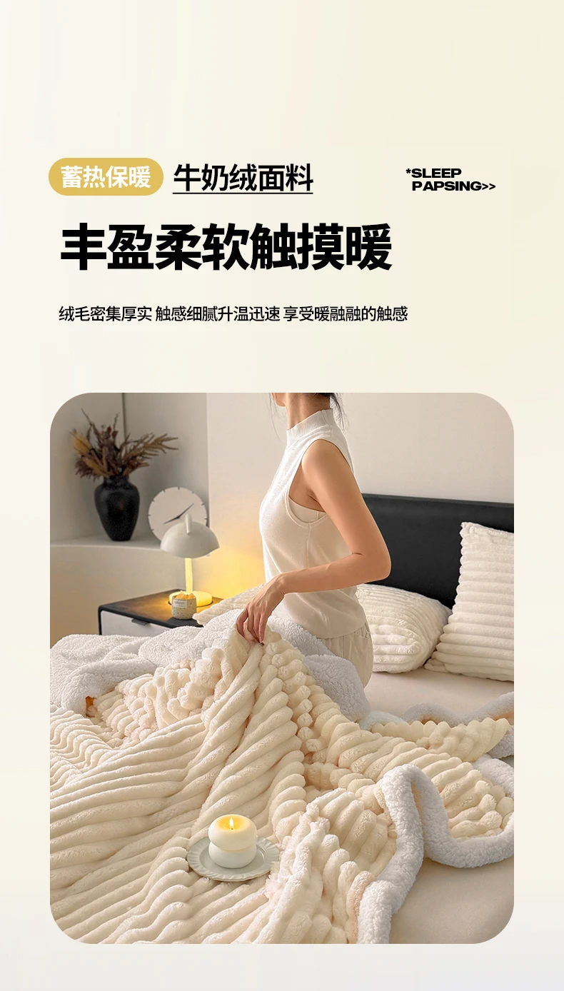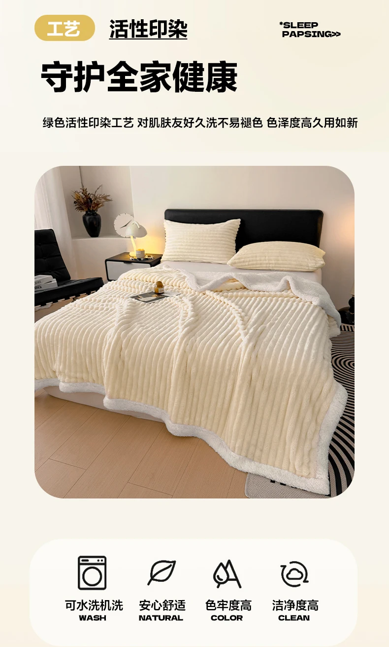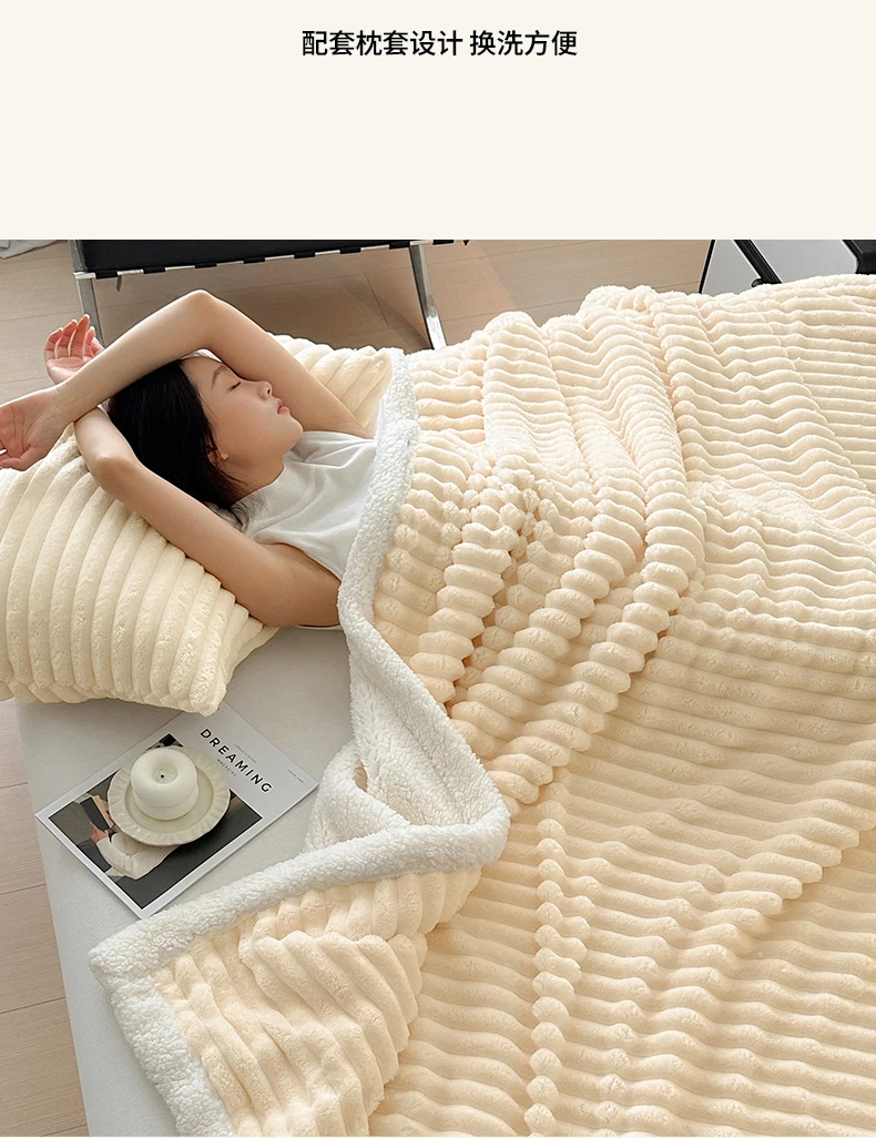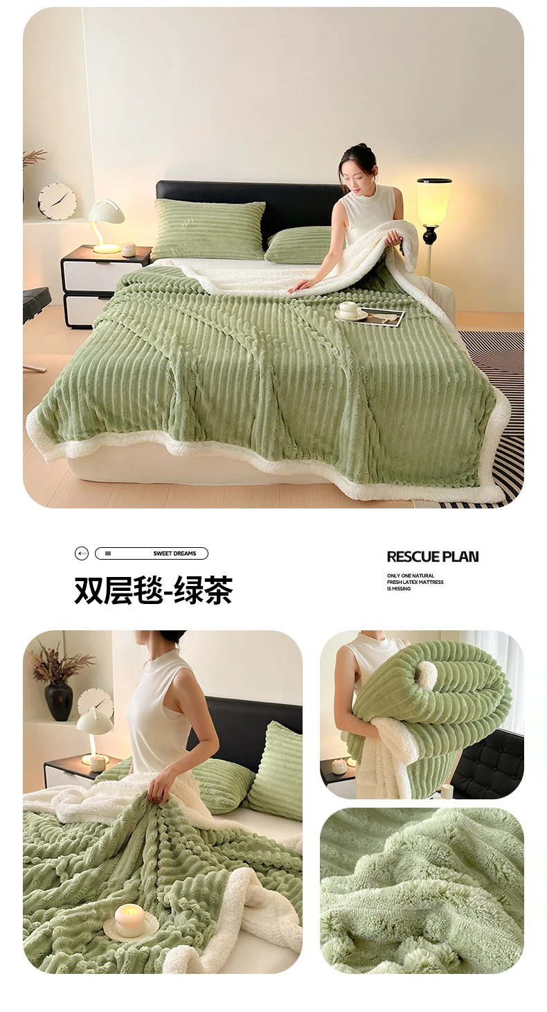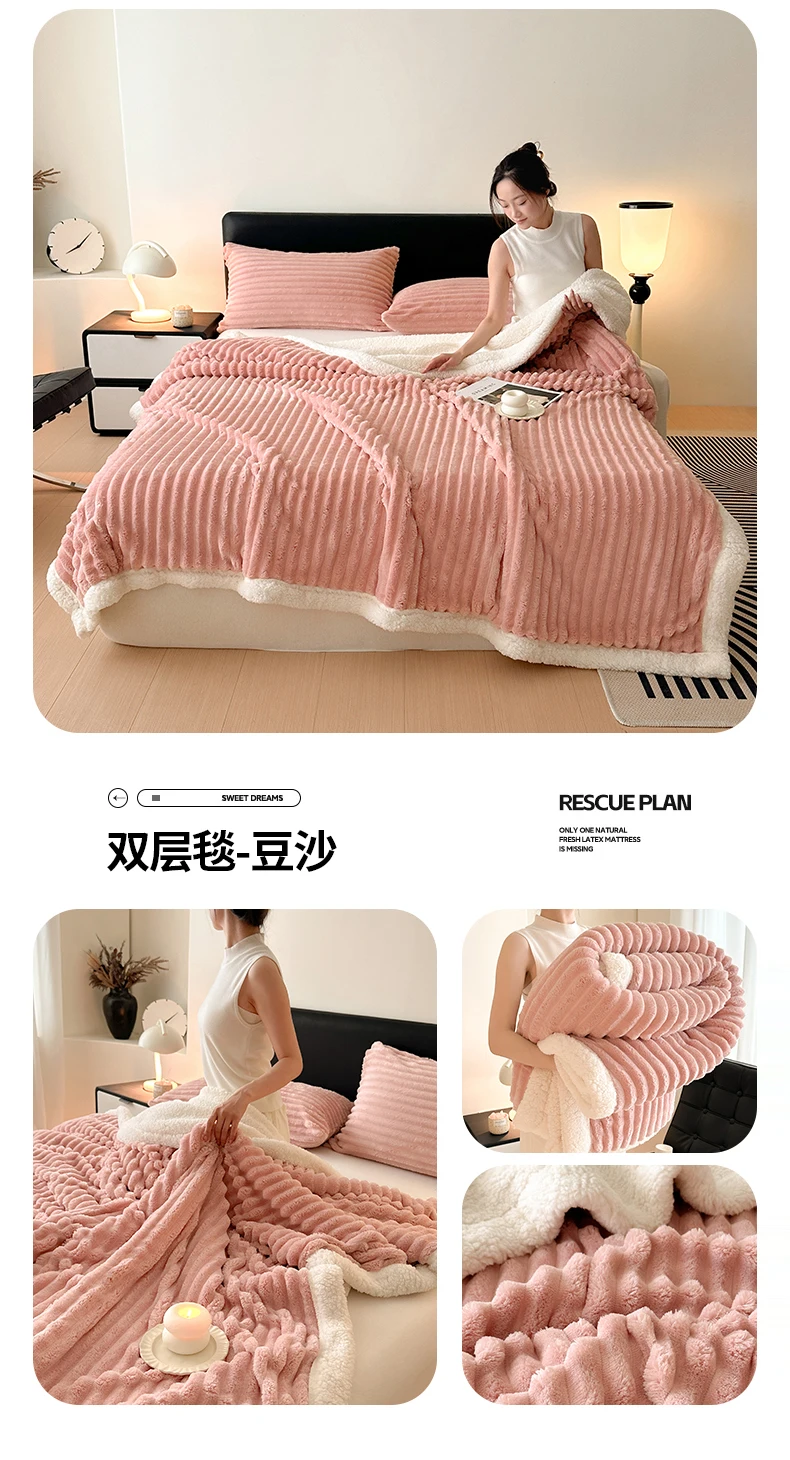 Cozy Fluffy Coral Fleece Blanket Thick Warm Striped Winter Duvets Soft Plush Sofa Throw Blanket Queen Bedroom Bedspread for Home