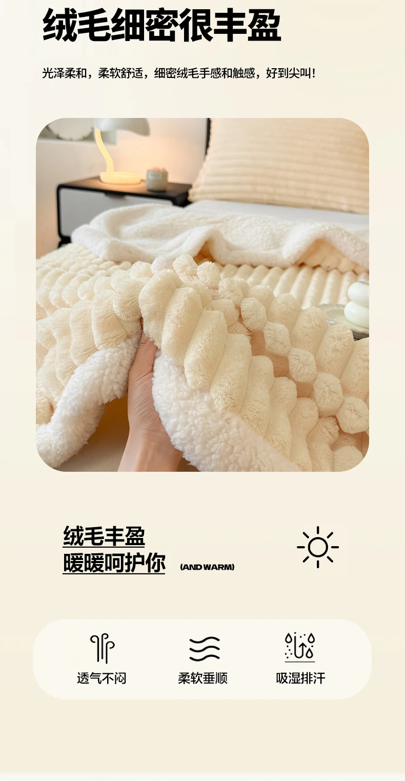 Due to its soft material and excellent insulation performance, the blanket can effectively block cold air and maintain body temperature, making people feel warm and pleasant.