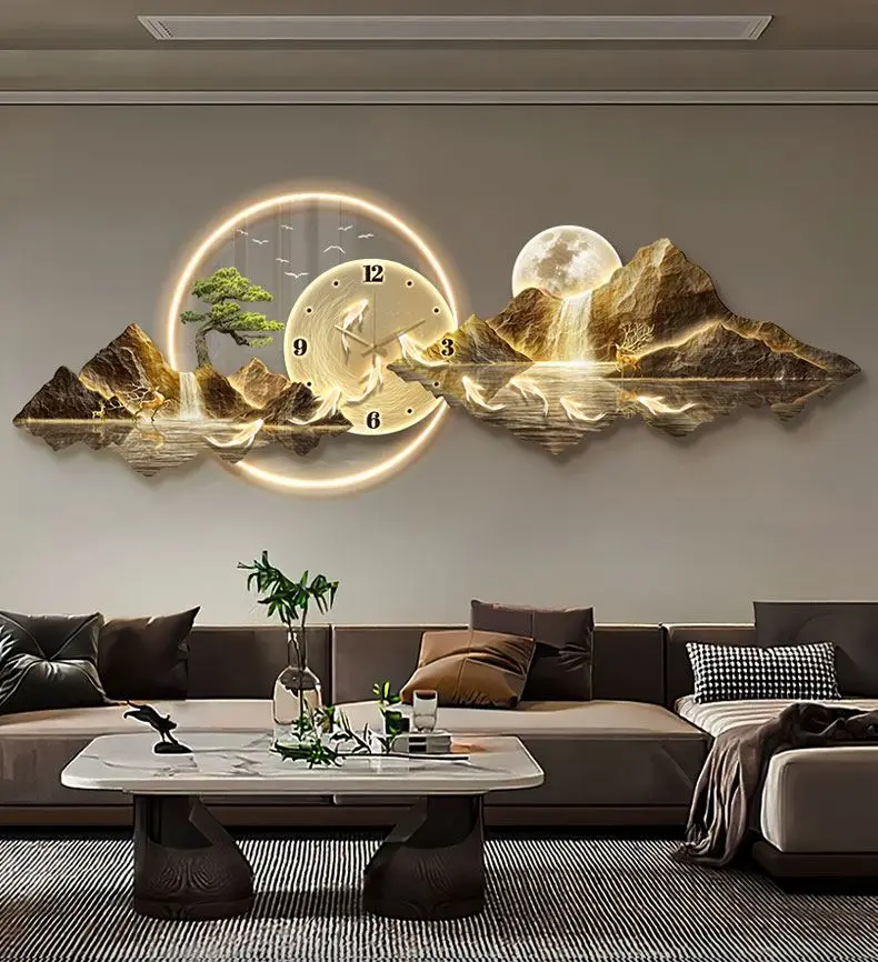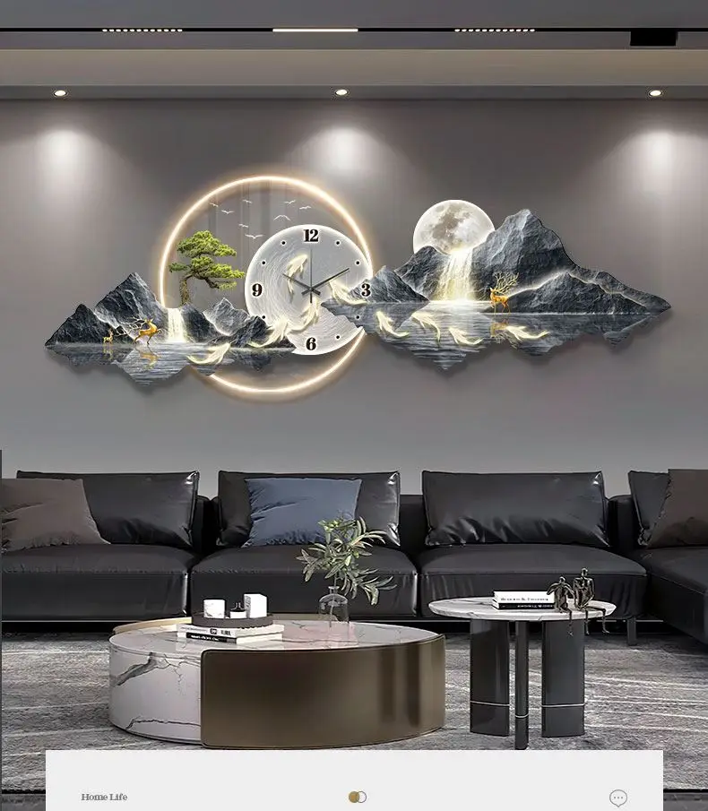 Creative Clock Hanging Painting Wall Decoration LED Mural Living RoomVisual Decoration Hanging Clock Nordic Home Decoration