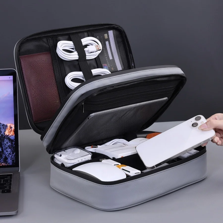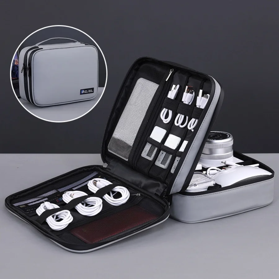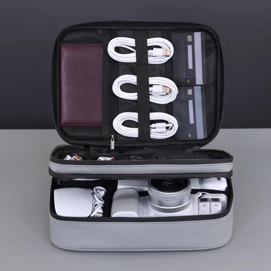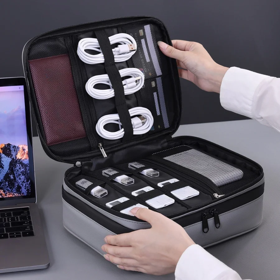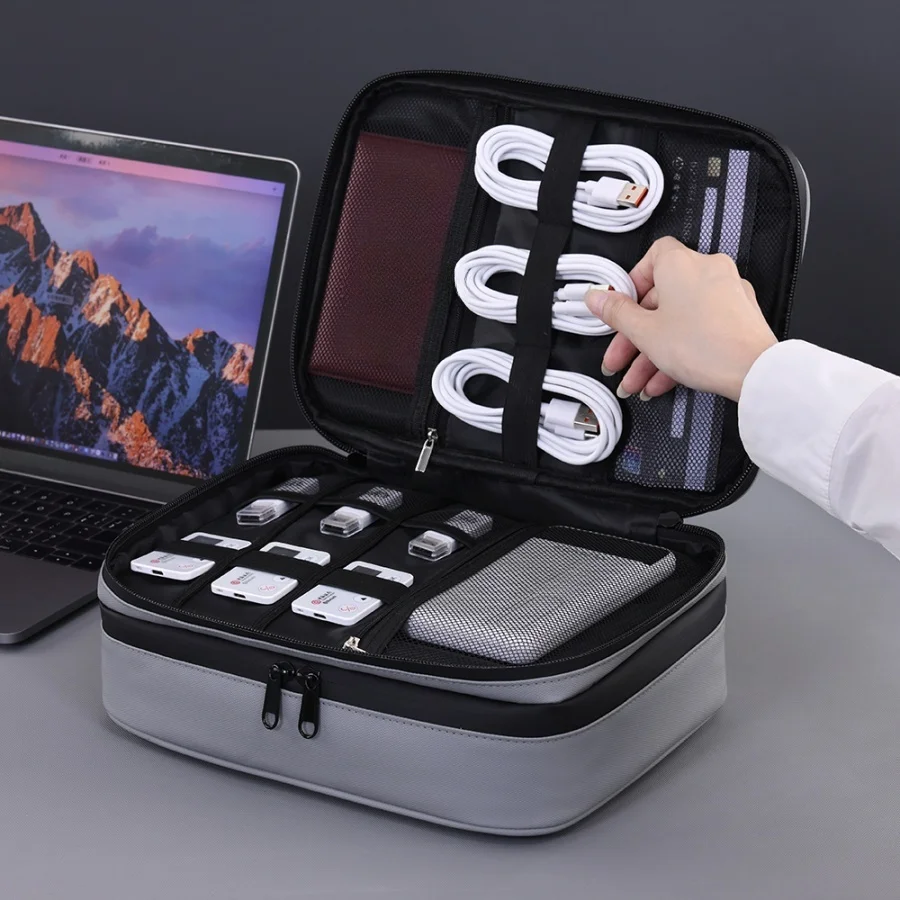 Double Layer Data Cable Storage Bag Mouse Headphones Power Bank Digital Accessories Organizer Business Travel Makeup Bags