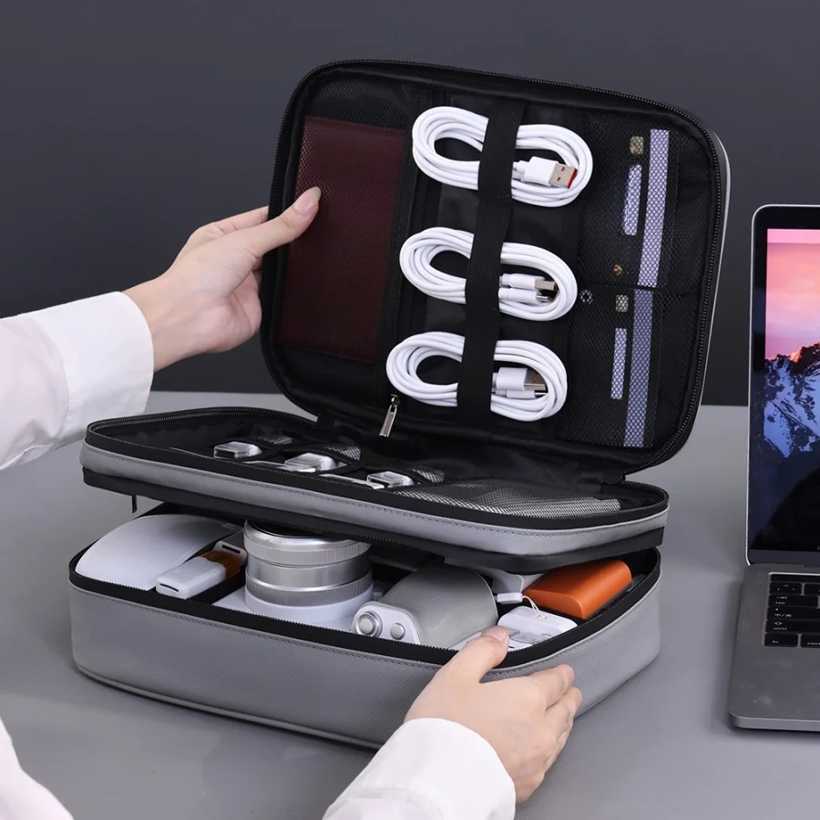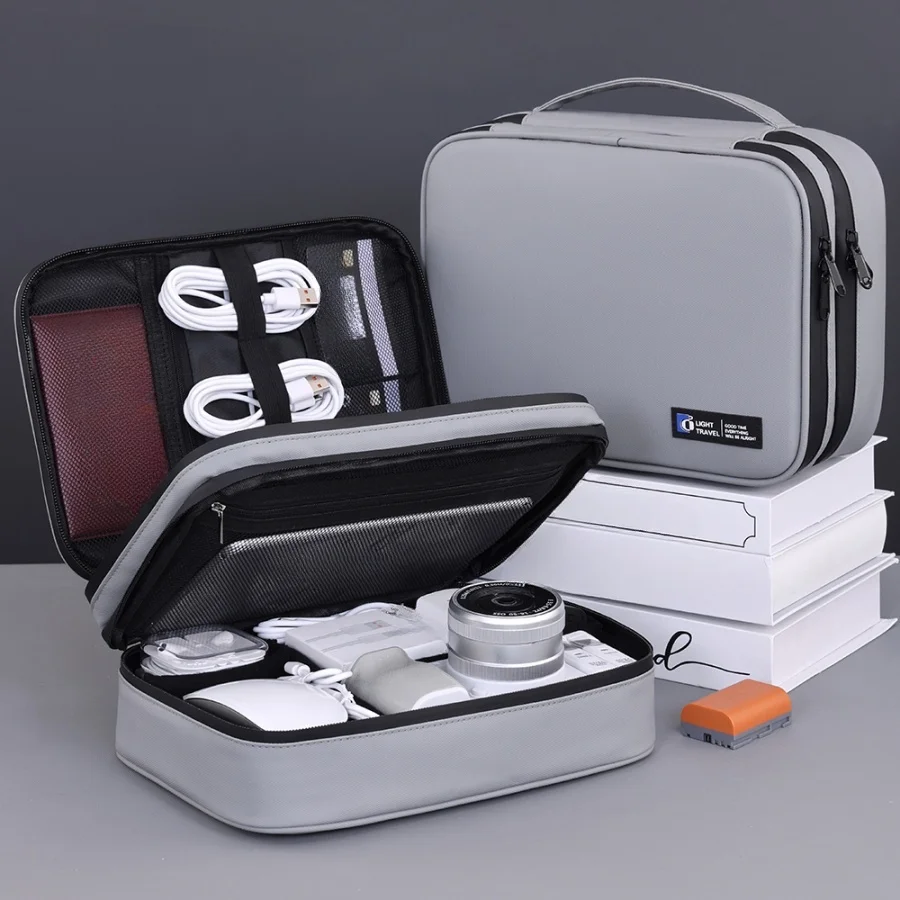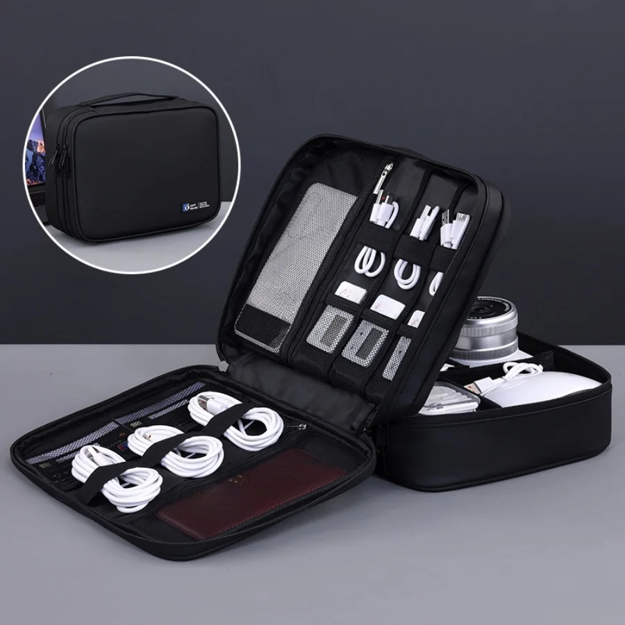 Double Layer Data Cable Storage Bag Mouse Headphones Power Bank Digital Accessories Organizer Business Travel Makeup Bags