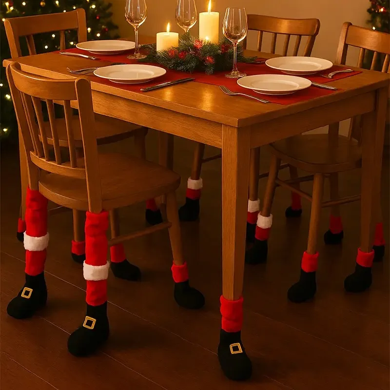 Embroidered Christmas Chair and Table Leg Covers, Holiday Decor for Hotels and Restaurants, Festive Dining Room Accessories