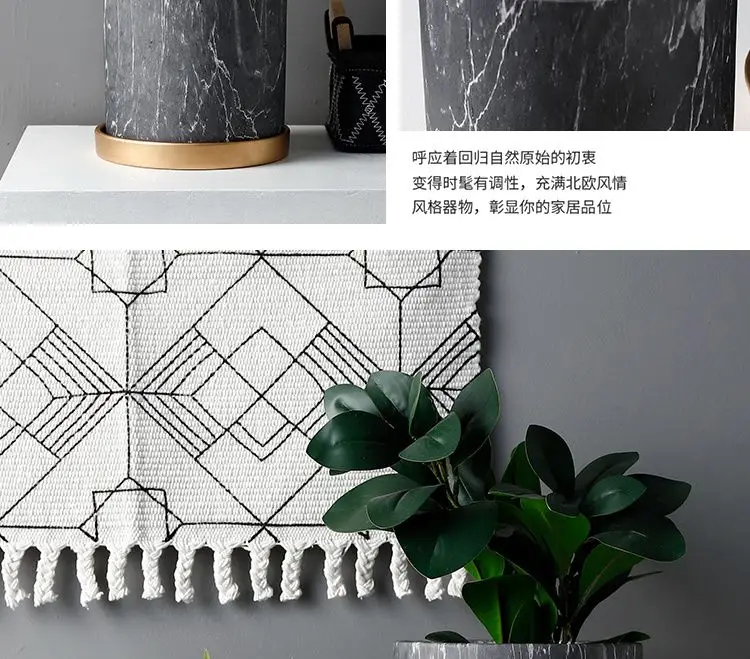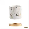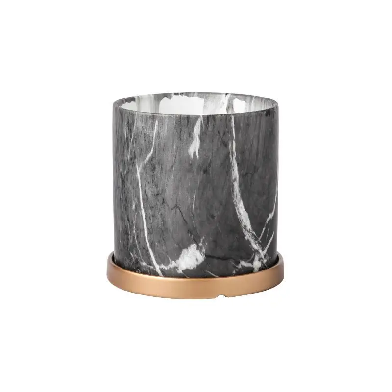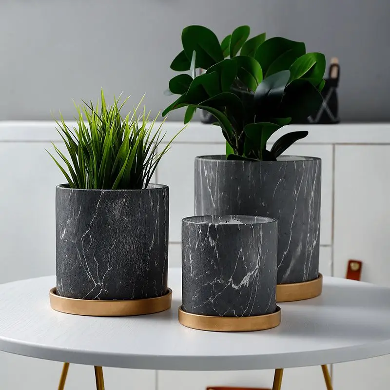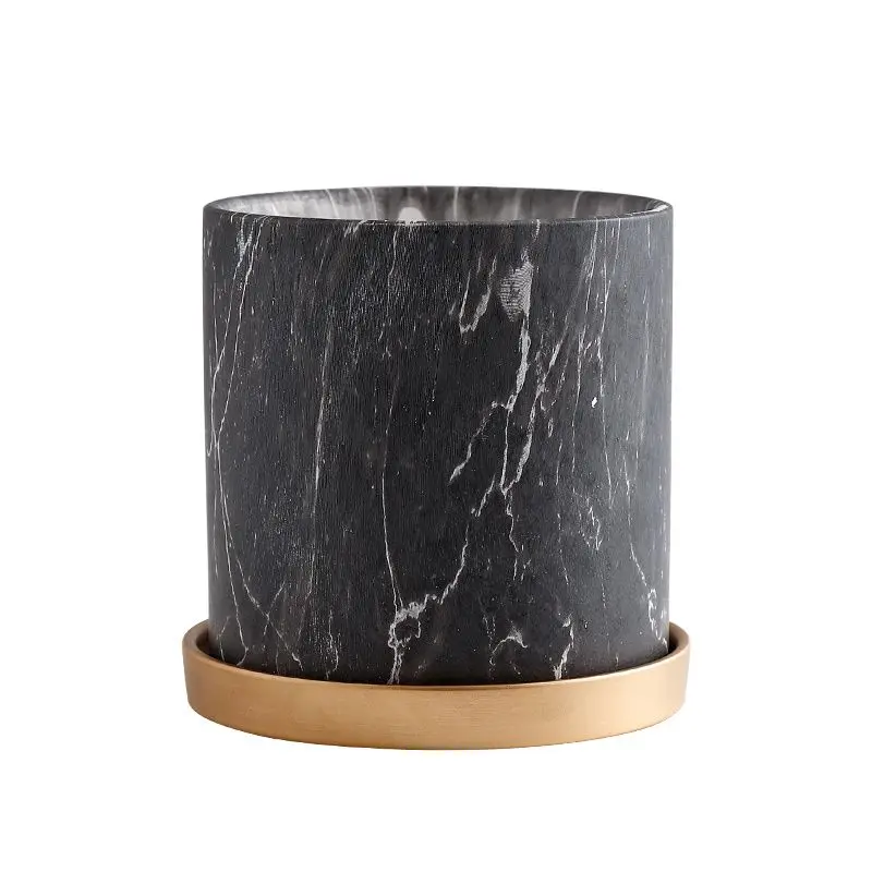 European Style Marbled Cylindrical Ceramic Flowerpot with Golden Tray Household Succulents Potted Gardening Garden Decoration