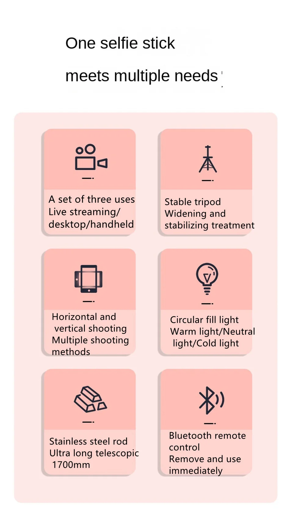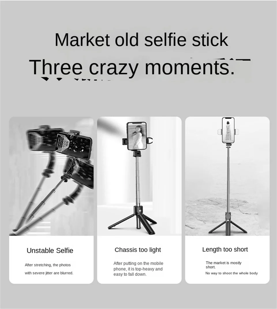 FGCLSY 1.7M selfie stick tripod with Light wireless remote control 360 ° rotation for smartphone video recording live streaming