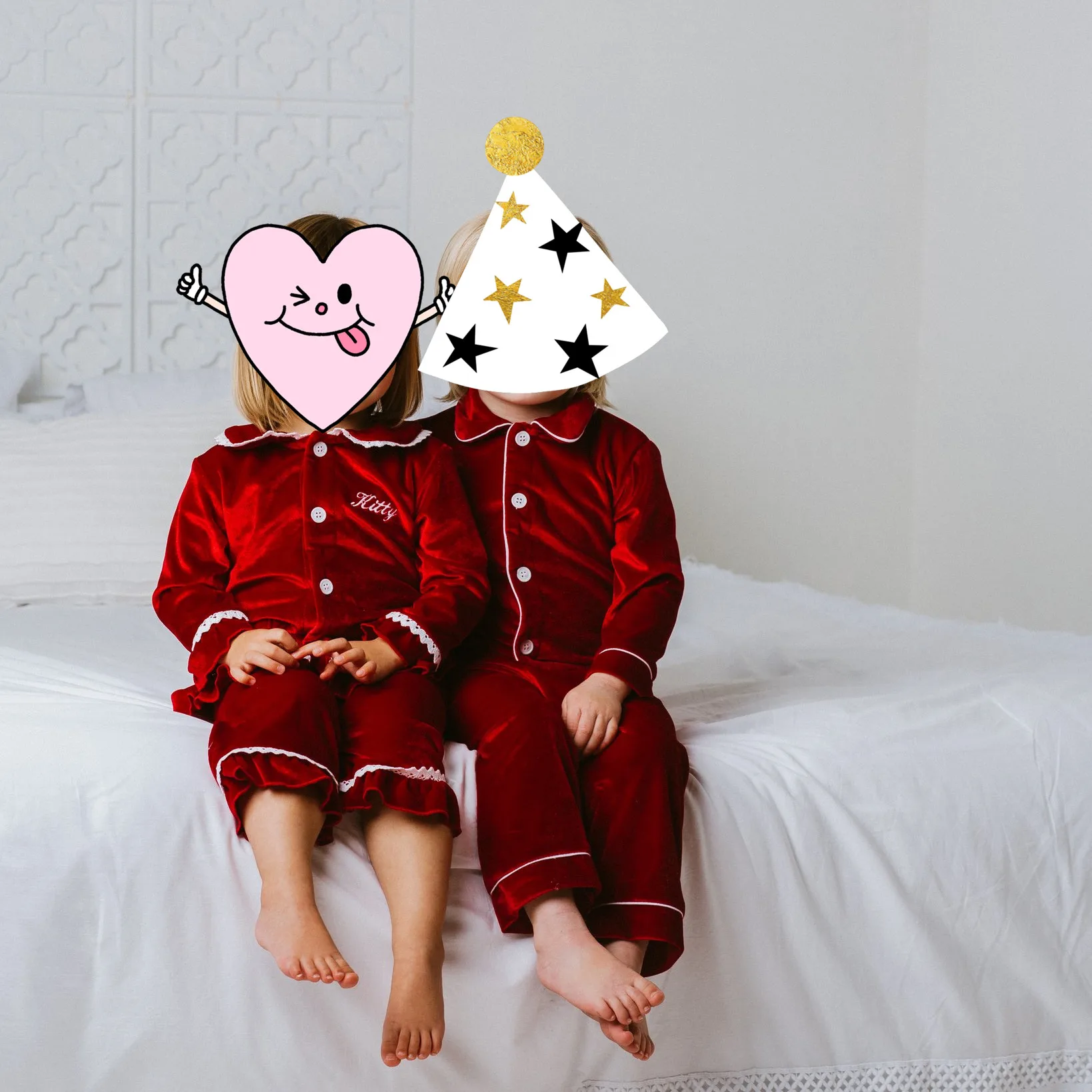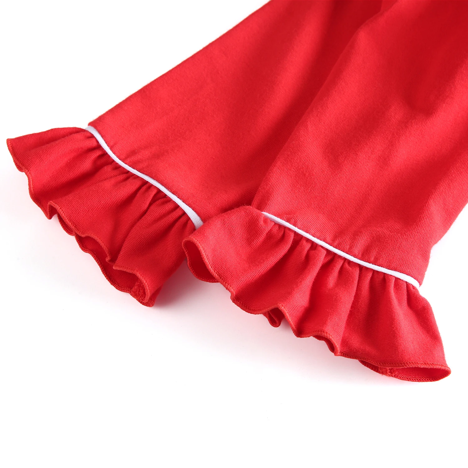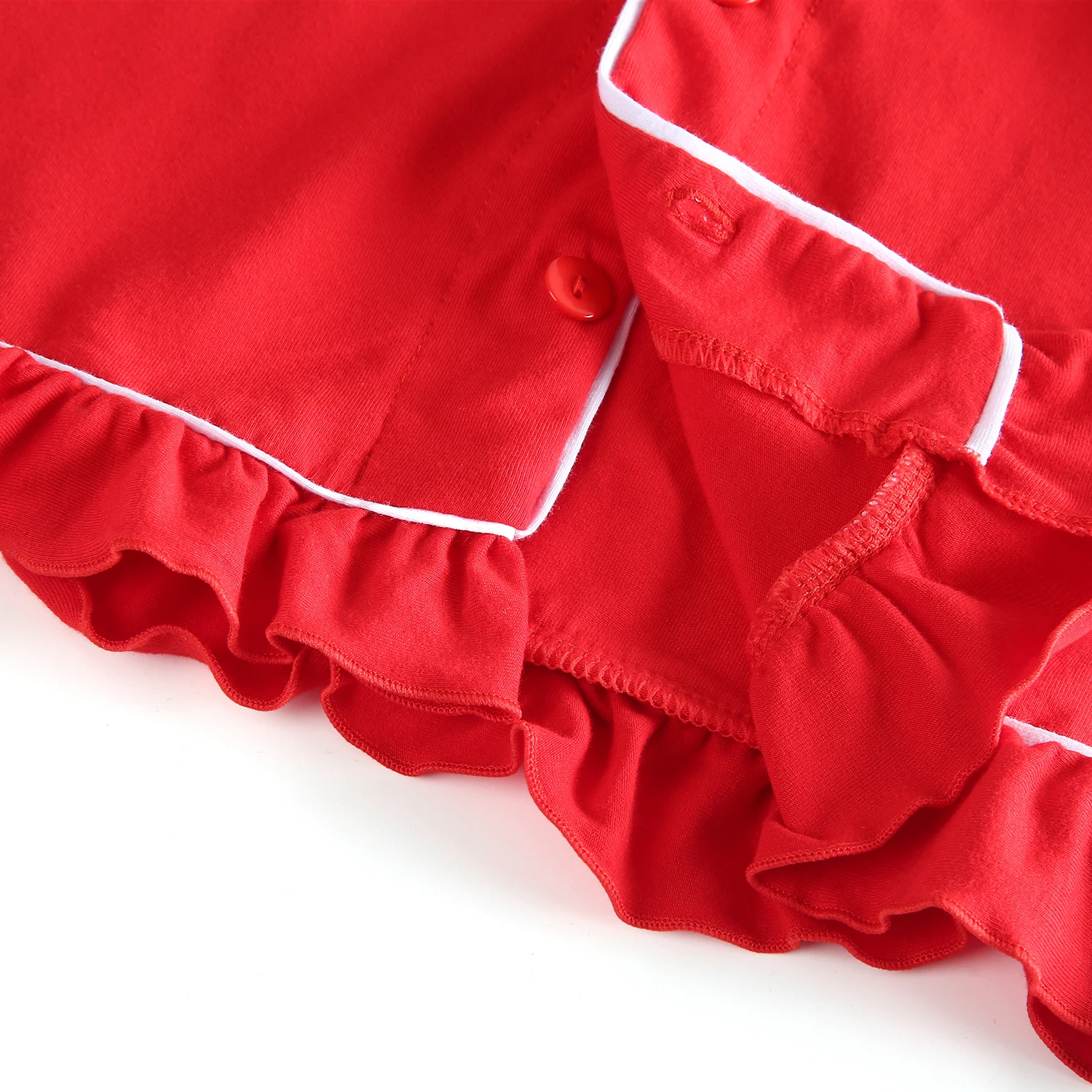 Hot Sale Family Matching Boys Girls Pajamas Outfits Red Solid Color Long Sleeve Baby Unisex Button Up Baby Christmas Pyjamas