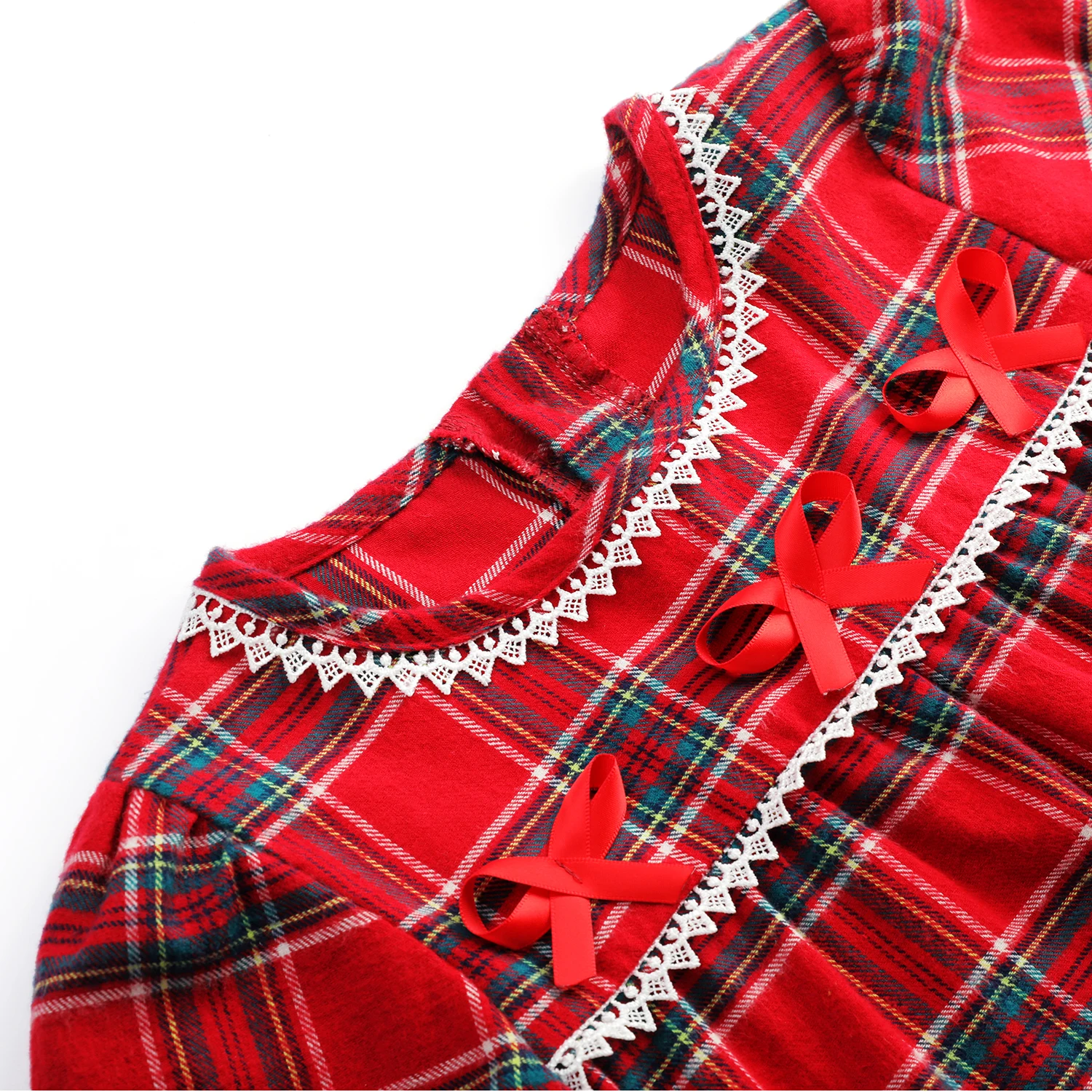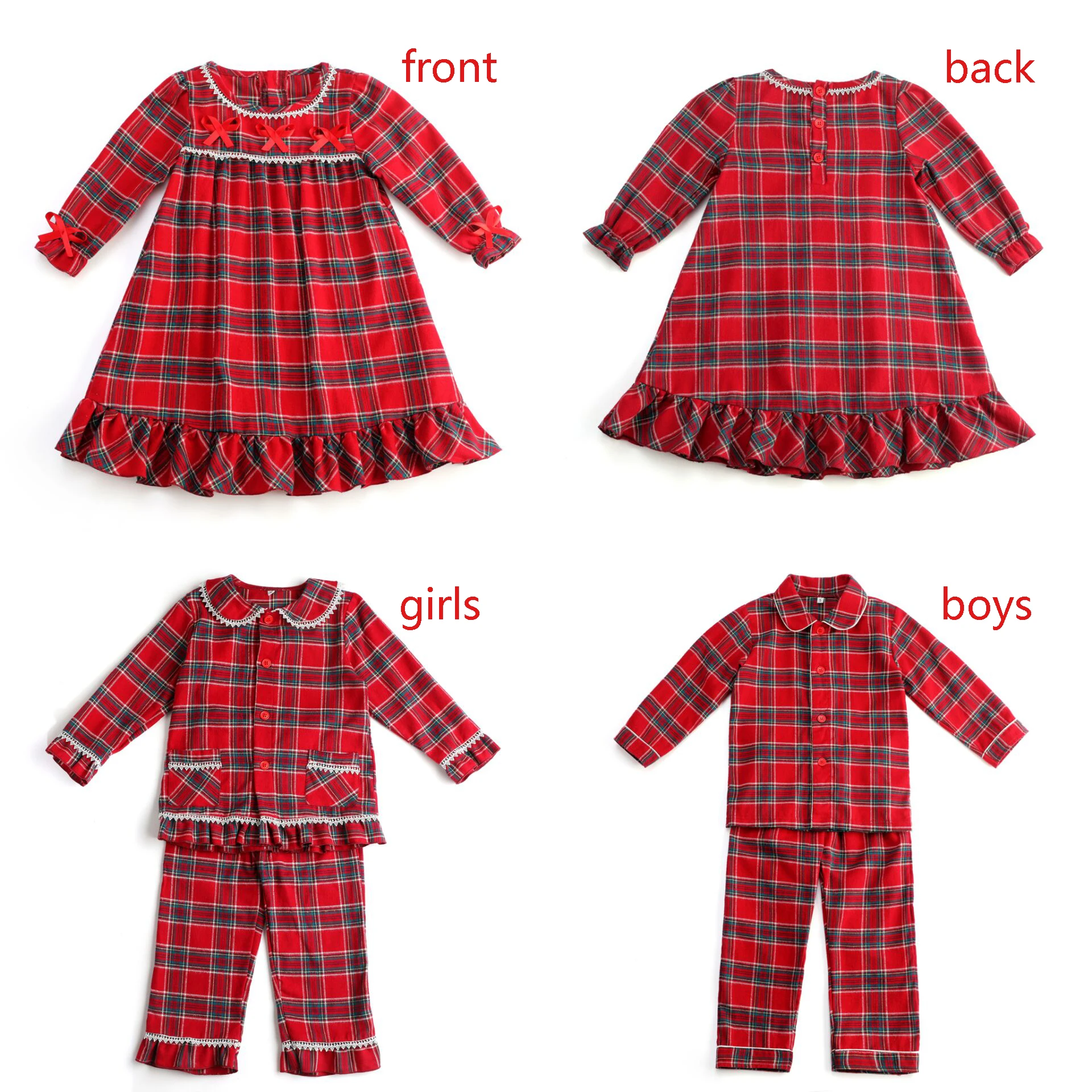 Flannel Christmas Family Matching Outfits Boys And Girls Ruffle Pajamas White Lace Red Long Sleeve Baby Button Kids Pyjamas Sets