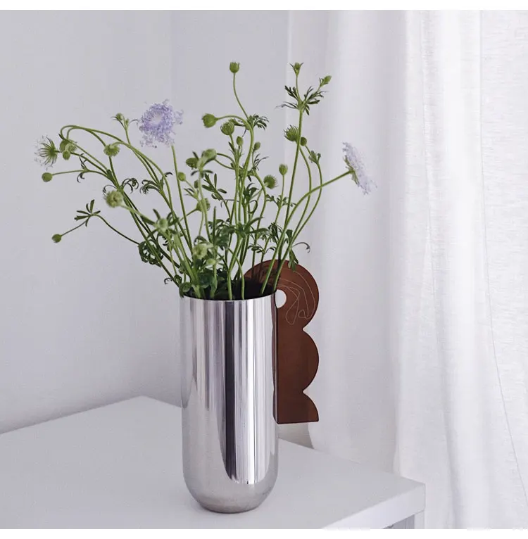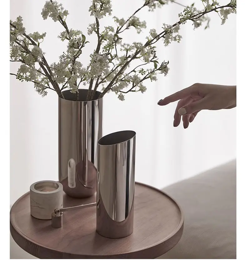 Flower Vase Decorative Centerpiece For Home or Wedding SUS304 Stainless Steel, 9″ Tall (Silver)