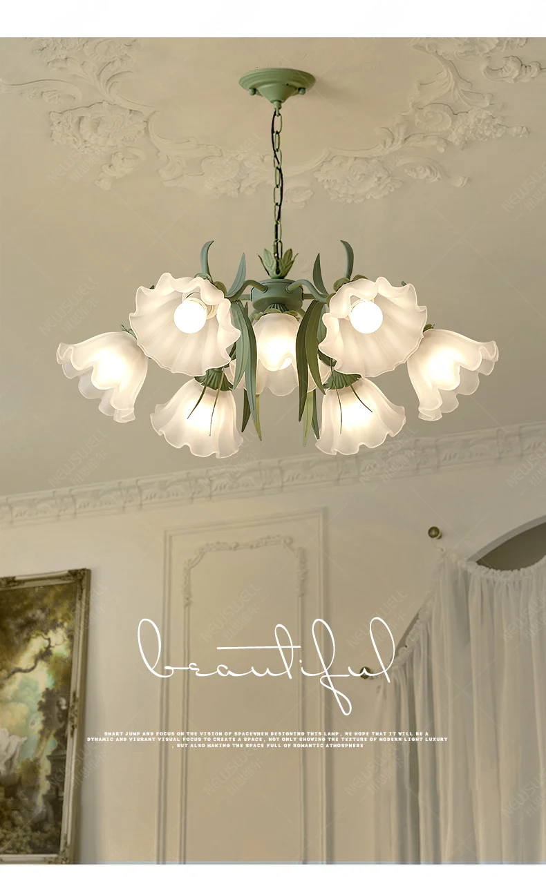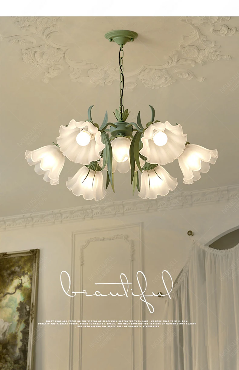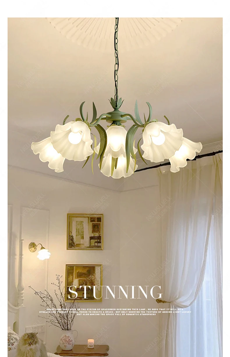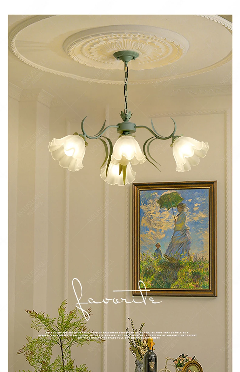 French Retro Style LED Bedroom, Restaurant, Living Room Ceiling Chandelier Wall Lamp, Nordic Creative Cream Flower Chandelier
