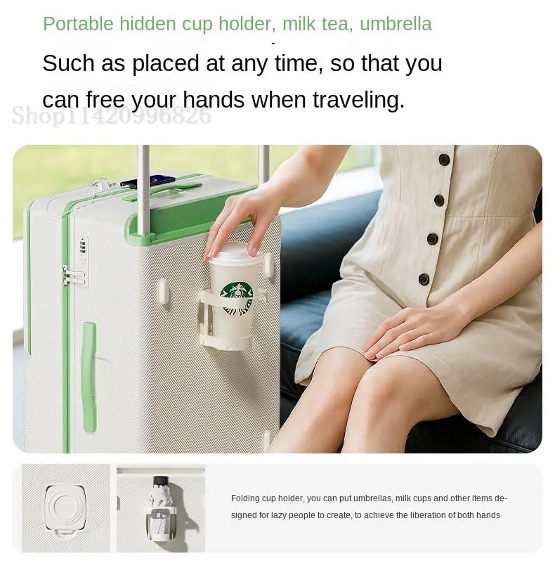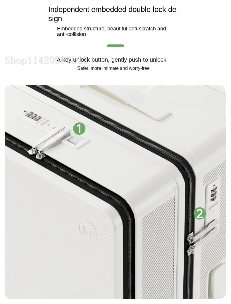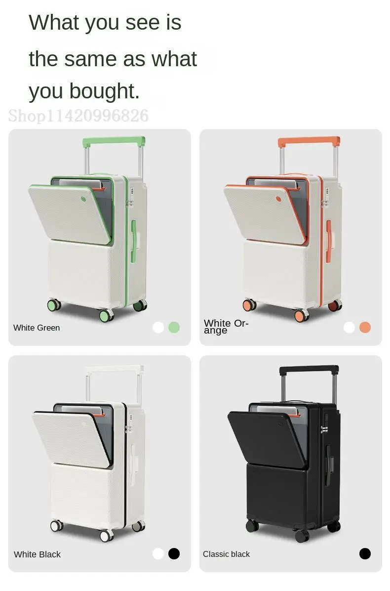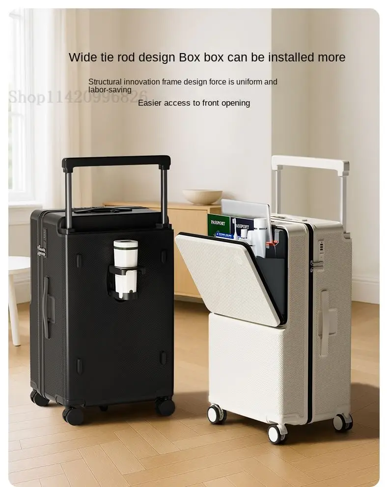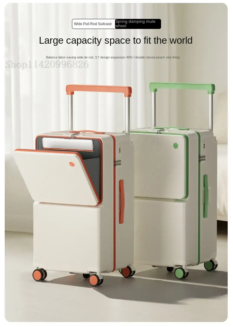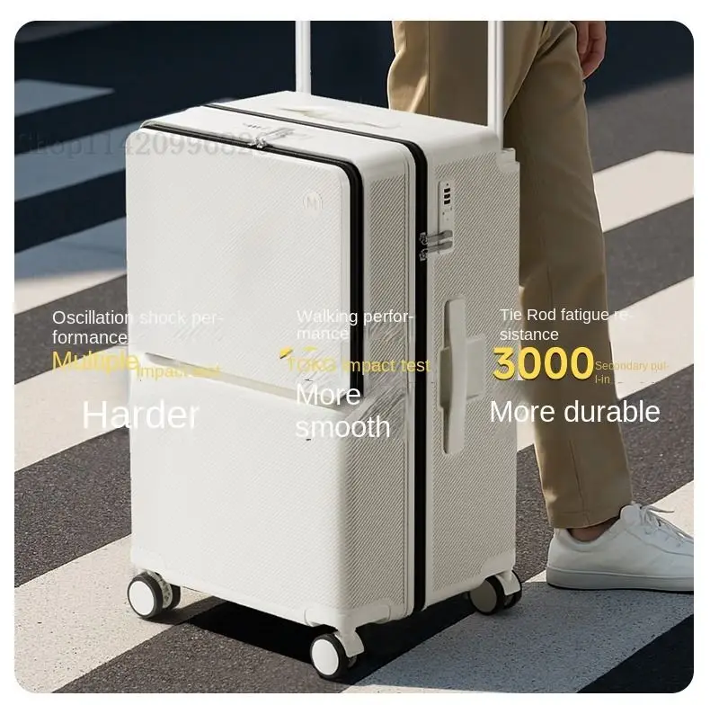 Front-Opening Luggage with Five Wheels 20-30 Inch Thickened Wide Handle Suitcase Large Capacity Carry-On Travel Suitcase