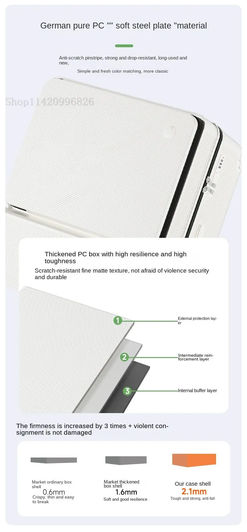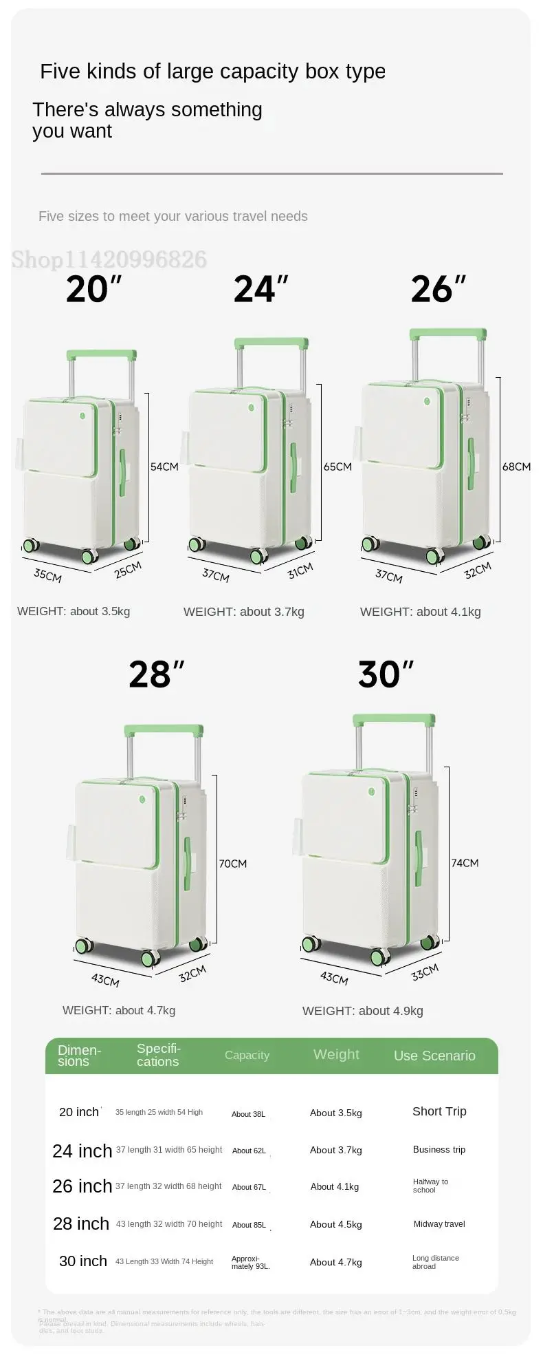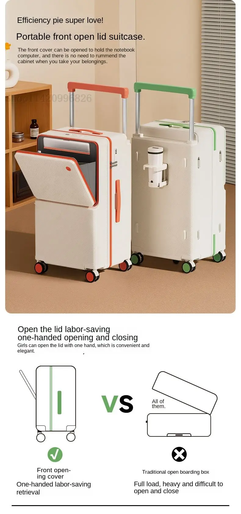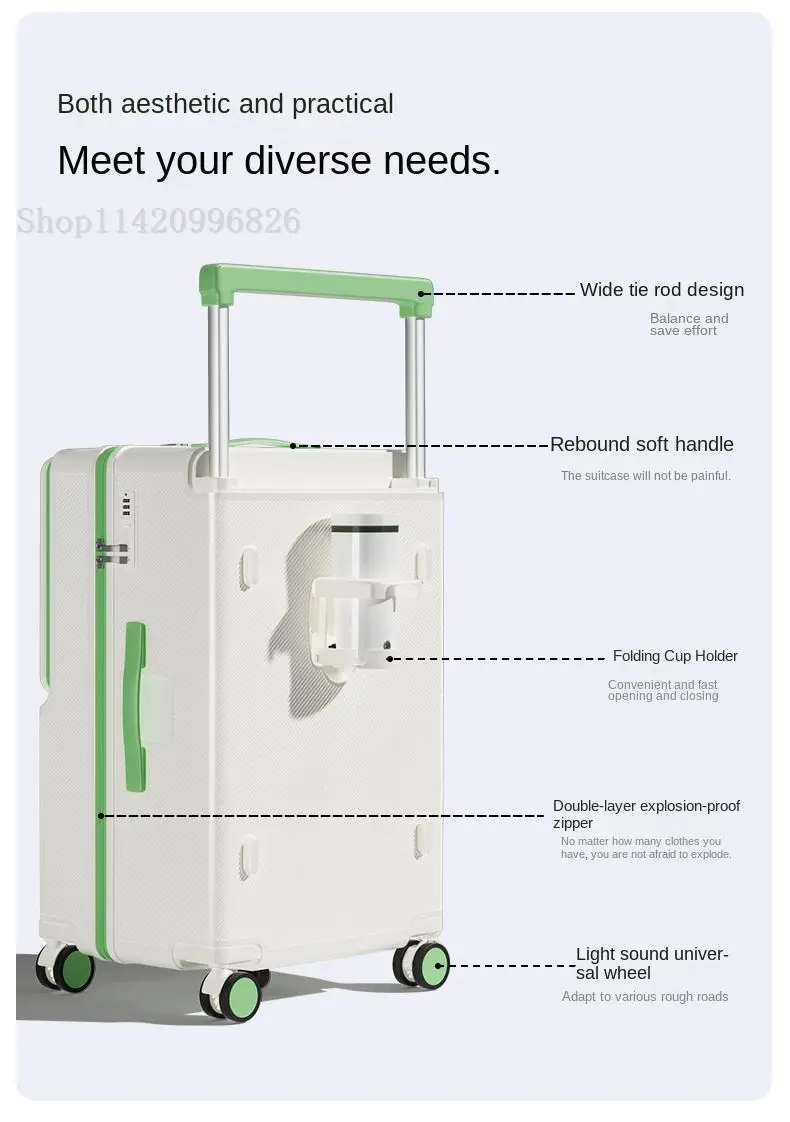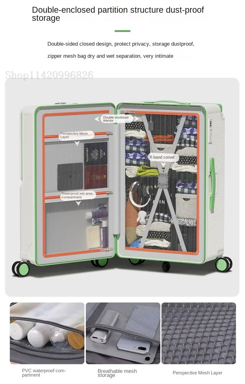 Front-Opening Luggage with Five Wheels 20-30 Inch Thickened Wide Handle Suitcase Large Capacity Carry-On Travel Suitcase