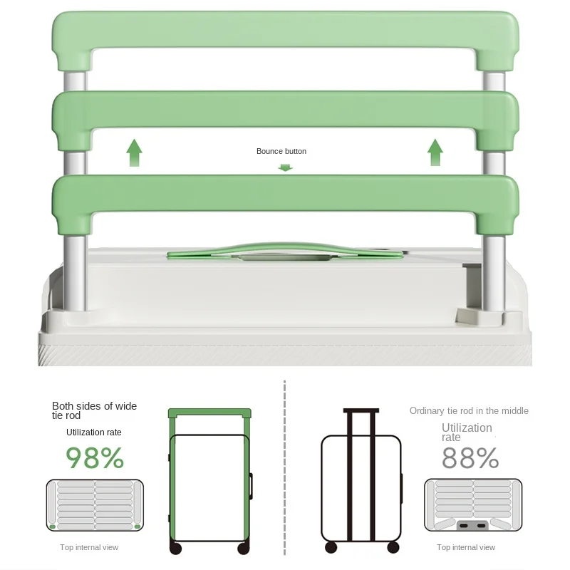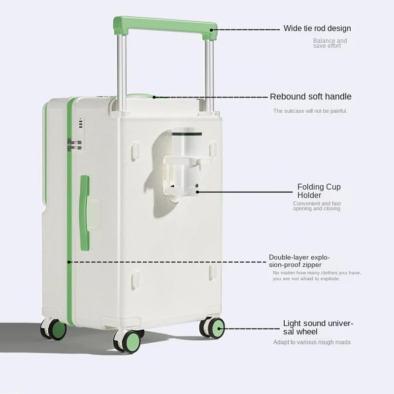 Front-Opening Luggage with Five Wheels 20-30 Inch Thickened Wide Handle Suitcase Large Capacity Carry-On Travel Suitcase