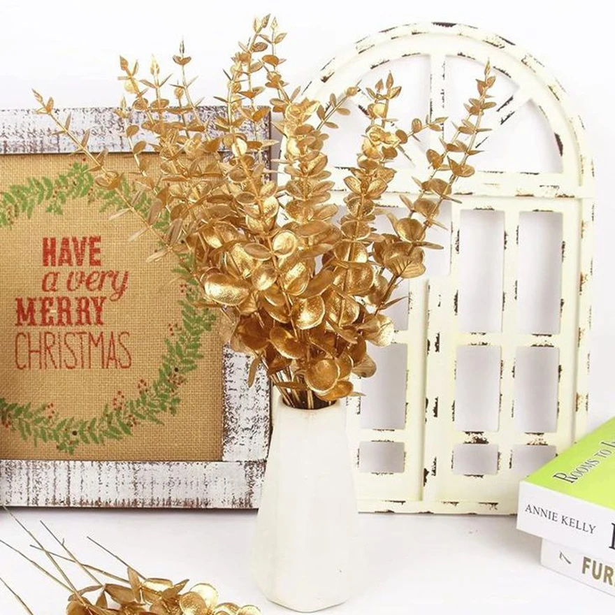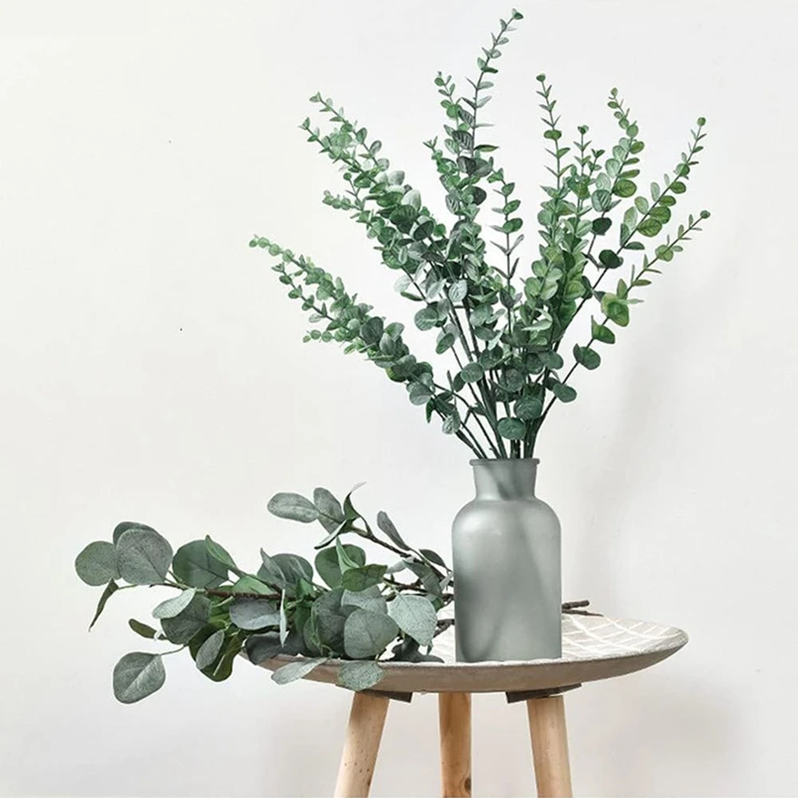 Golden Multicolor Artificial Eucalyptus Leaves Faux Greenery Branches Wedding Bride Bouquet Home Room Vase Cheap Diy Decor Parts