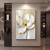 Golden Yellow And White Abstract Thick Flowers Canvas Wall Art Handpainted Blue Golden Florals Oil Painting Gray Artwork Decor