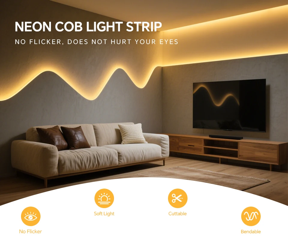 Good Quality COB LED Strip Neon Light 9MM 24V Super Bright No Dark Area Wall Lamp Waterproof,for Indoor Outdoor Lighting RA90