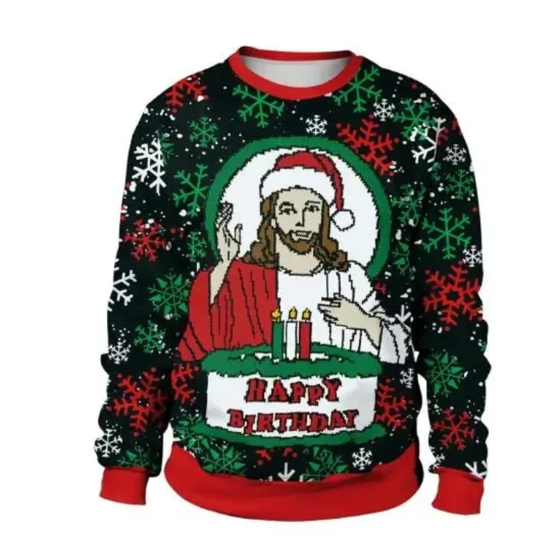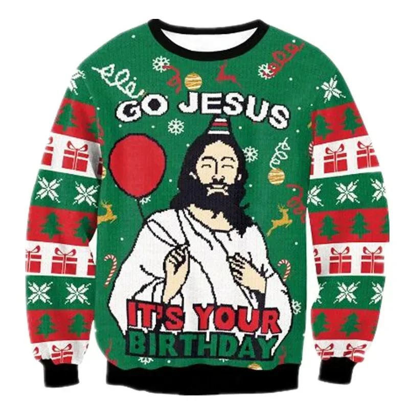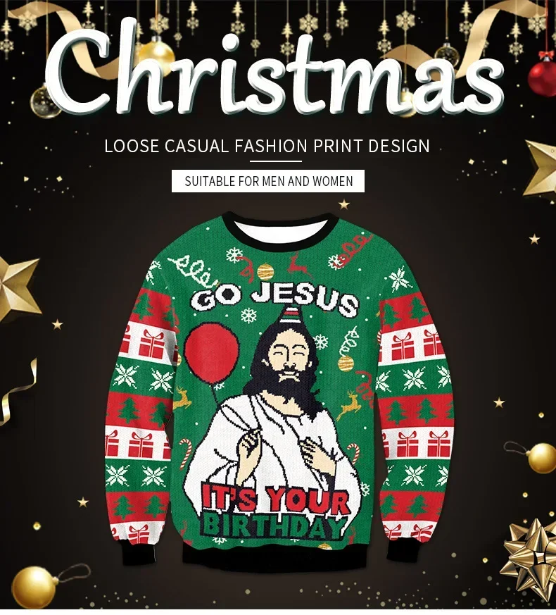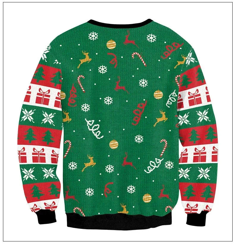 Green 3D Funny Printed Ugly Christmas Sweater Holiday Party Xmas Sweatshirt for Men And Women Party Birthday Holiday Wear