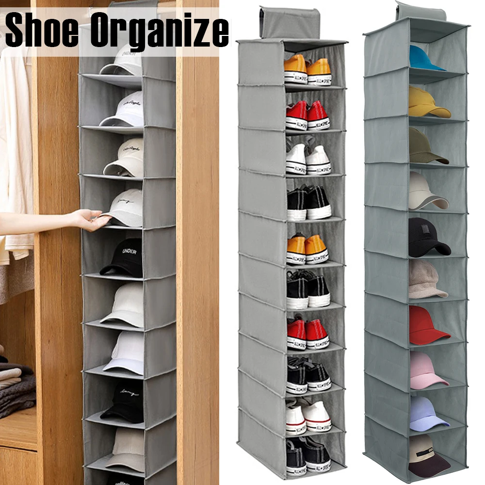 Hanging Shoe Organizer Non-woven Shoe Storage Shelf 10-Layer Foldable Hanging Shoe Rack Space Saving for Home Bedroom Closet
