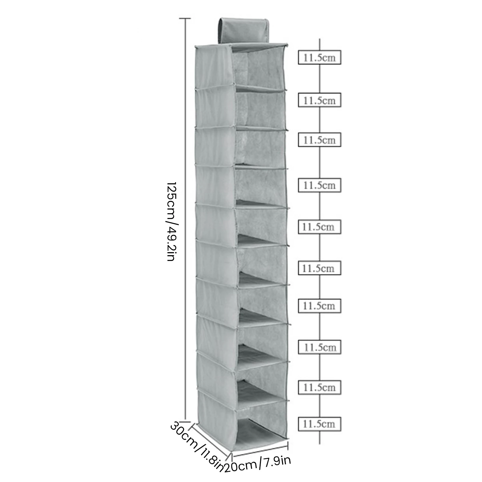 [10-Layer] The hanging shoe organizer has 10 layers of compartments, and each one can hold 1 pairs of shoes, totally hold 10 pairs of shoes.