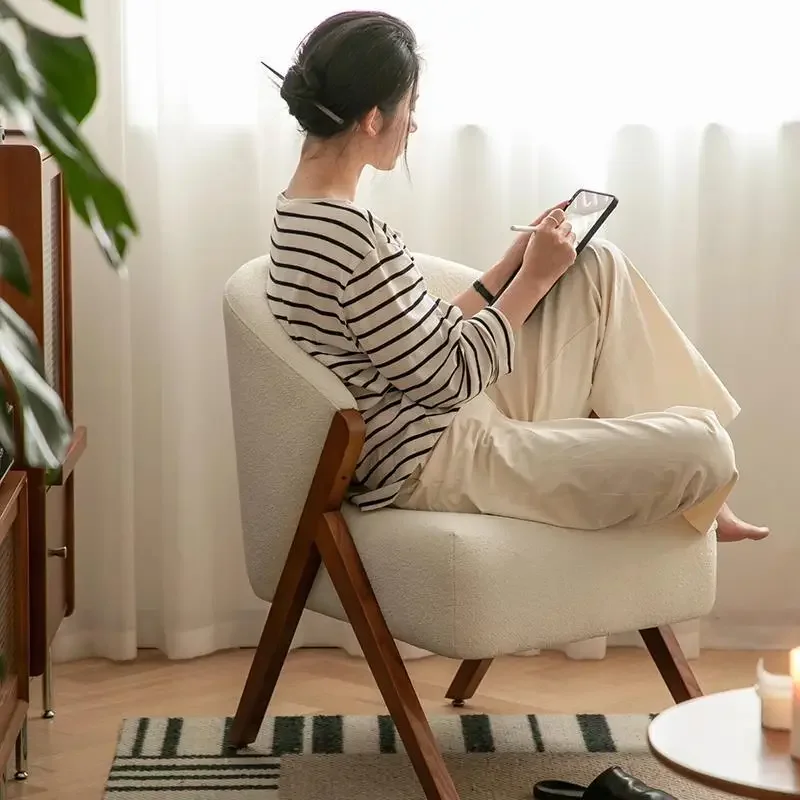 Hot Furniture Nordic, Solid Wood, Stool, Balcony, Sofa Chair, Single Leisure Chair, Hotel, Living Room, Lazy, Bedroom, Makeu