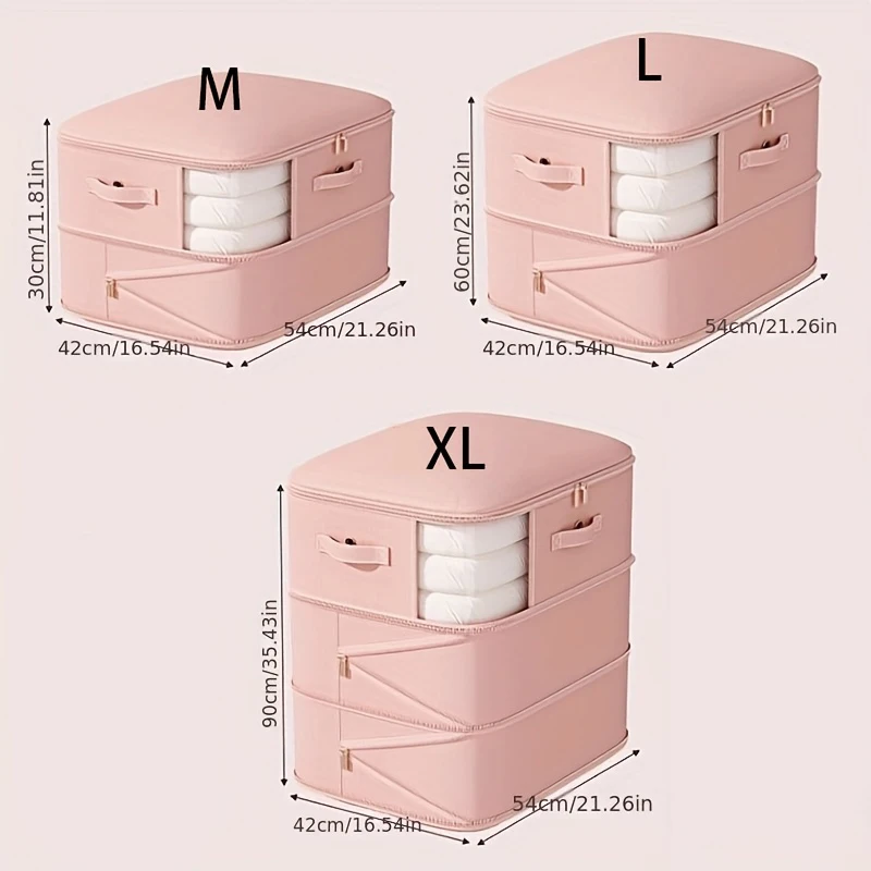 1.Declutter Save Space: Perfect for storing and organizing winter blanket, duvets, king and queen size comforters, sweater, quilts, sheets, baby items etc; Hassle free no vacuum storage that has a big capacity though still compact; Safe to store in Attic or Basement.