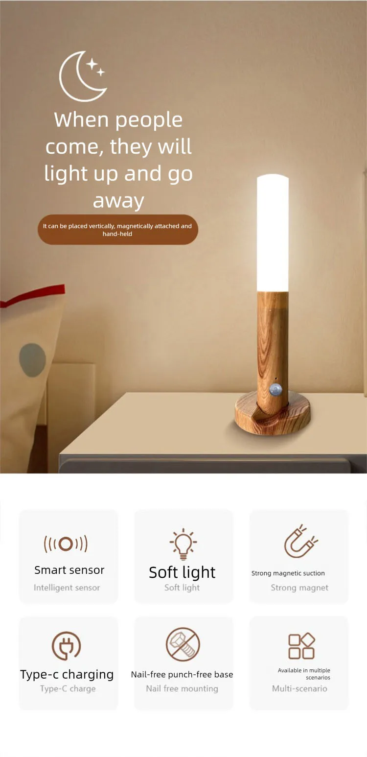 LED Night Light USB Charging Intelligent Human Induction For Bedside Cabinet Home Wardrobe Lighting Motion Sensor Light Led Lamp