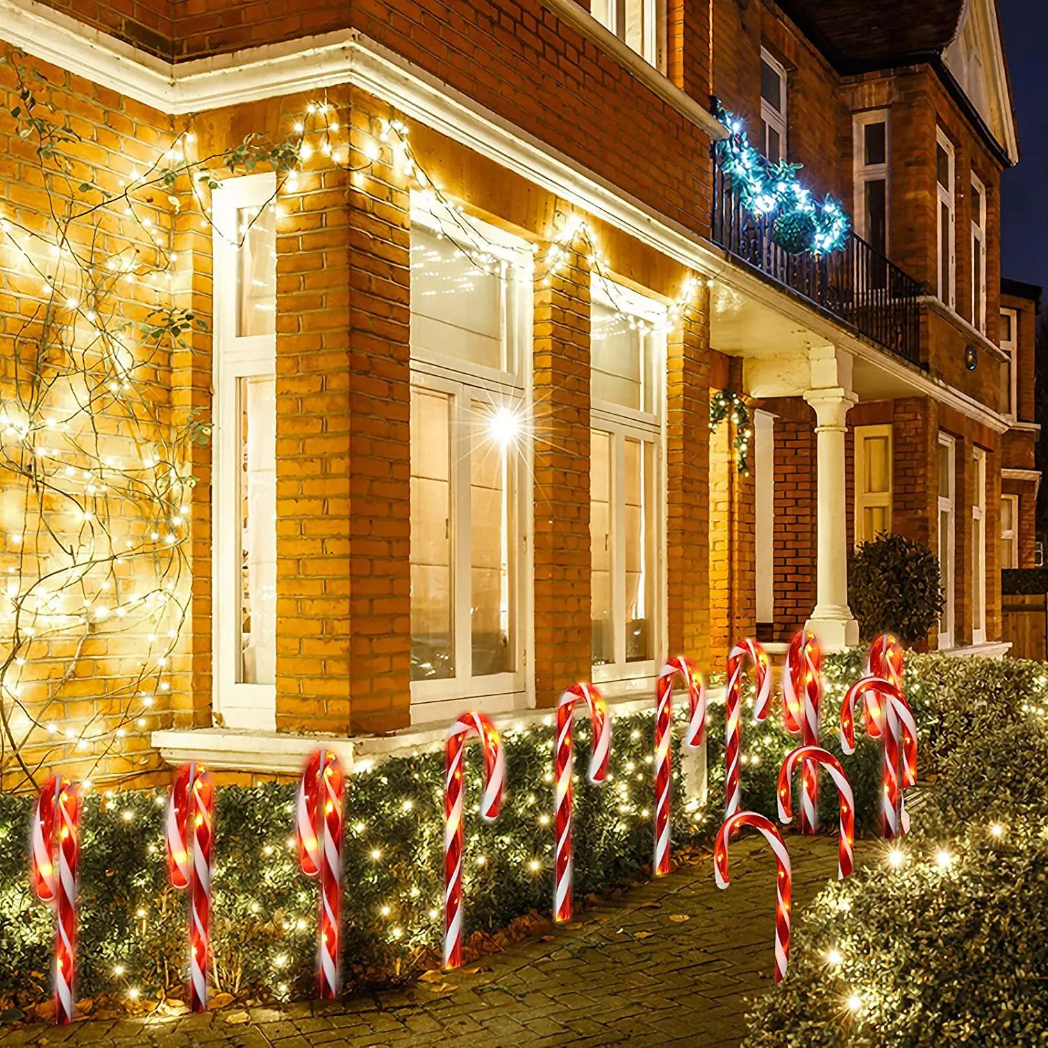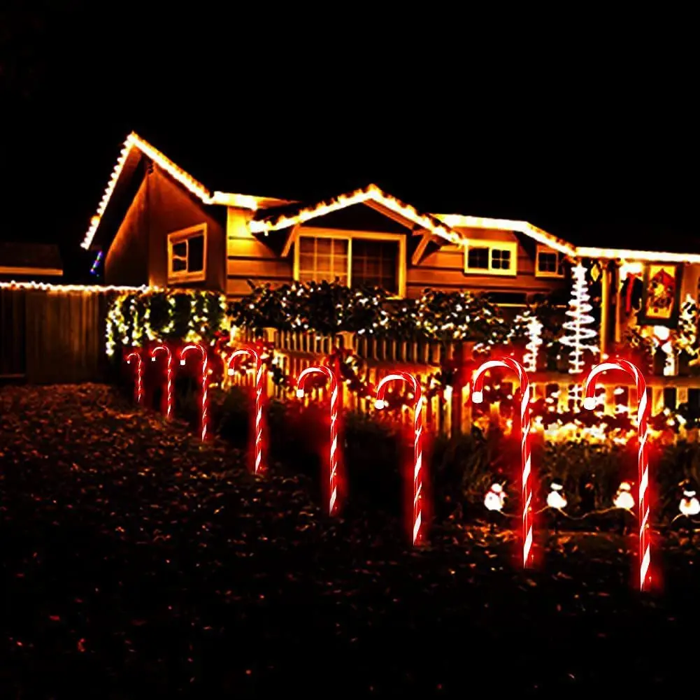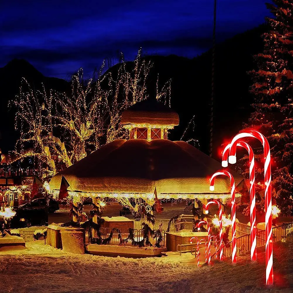 LED Solar Operated Christmas Candy Cane Pathway Markers Light For Xmas Outdoor Patio Garden Walkway Decor Lawn Holiday Light New
