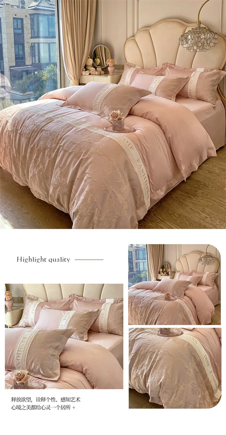 Light luxury 60 skin-friendly cotton four-piece set, high-end quilt cover, bed sheet, mattress, bedding