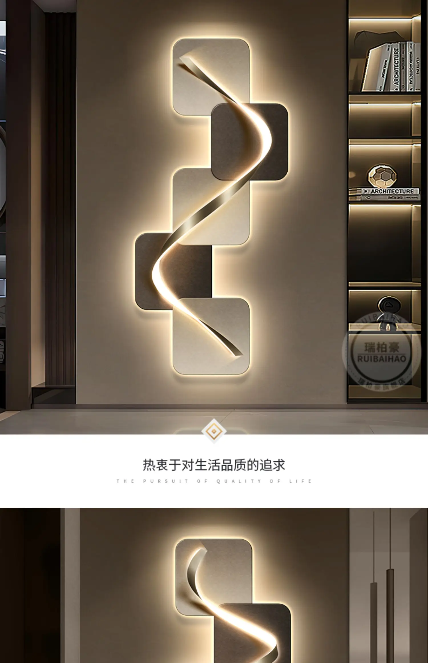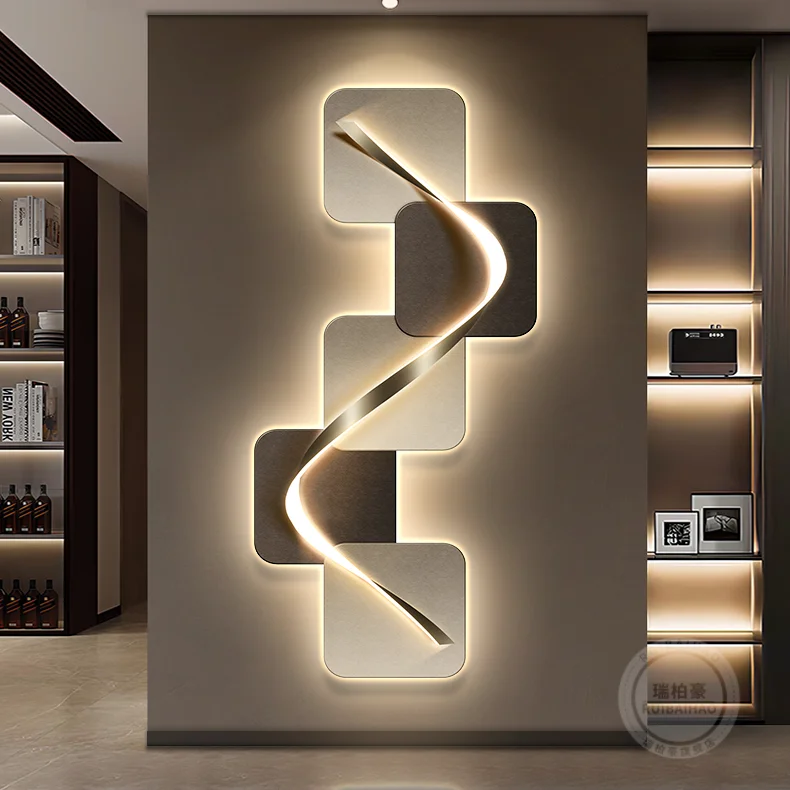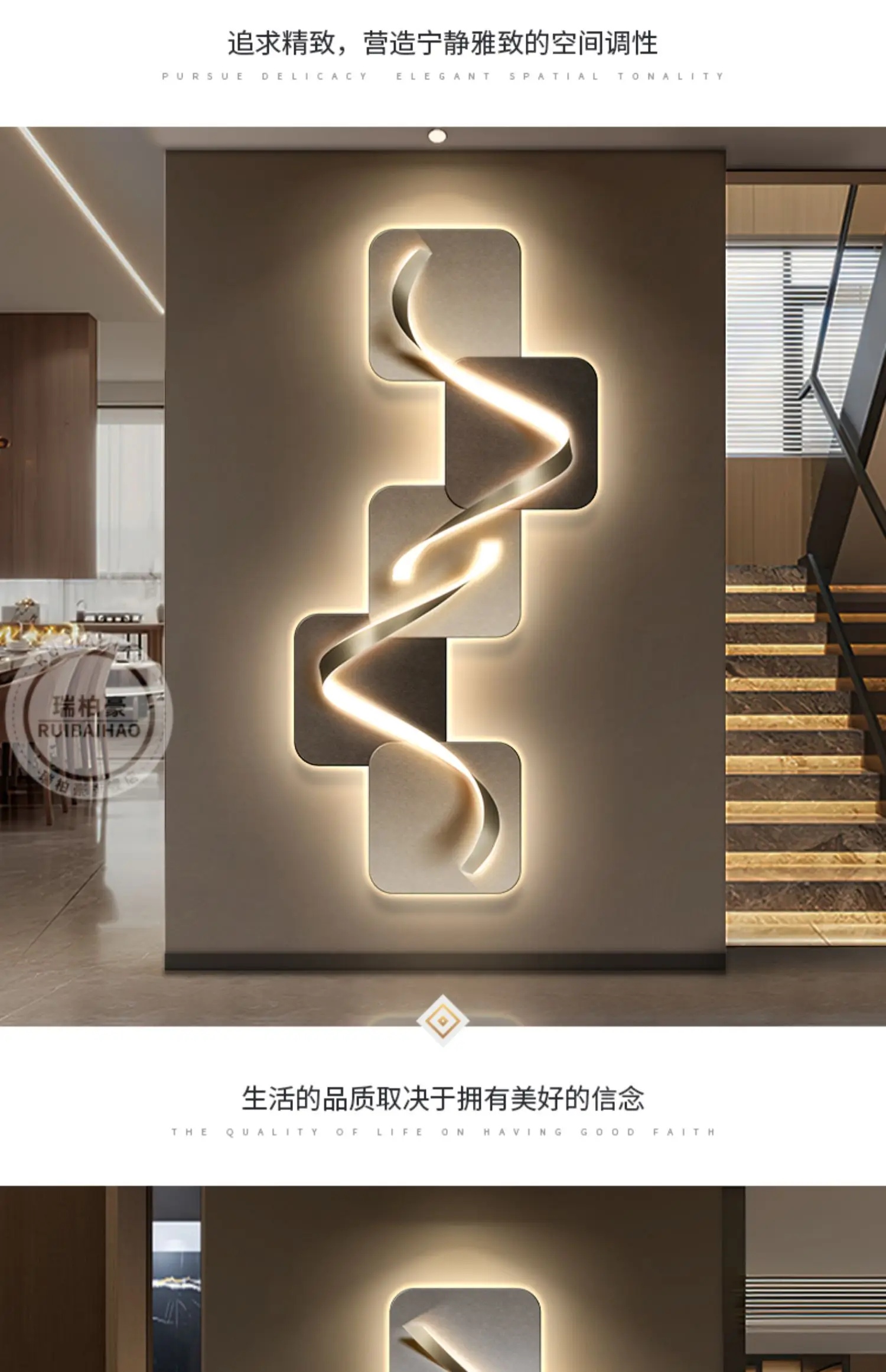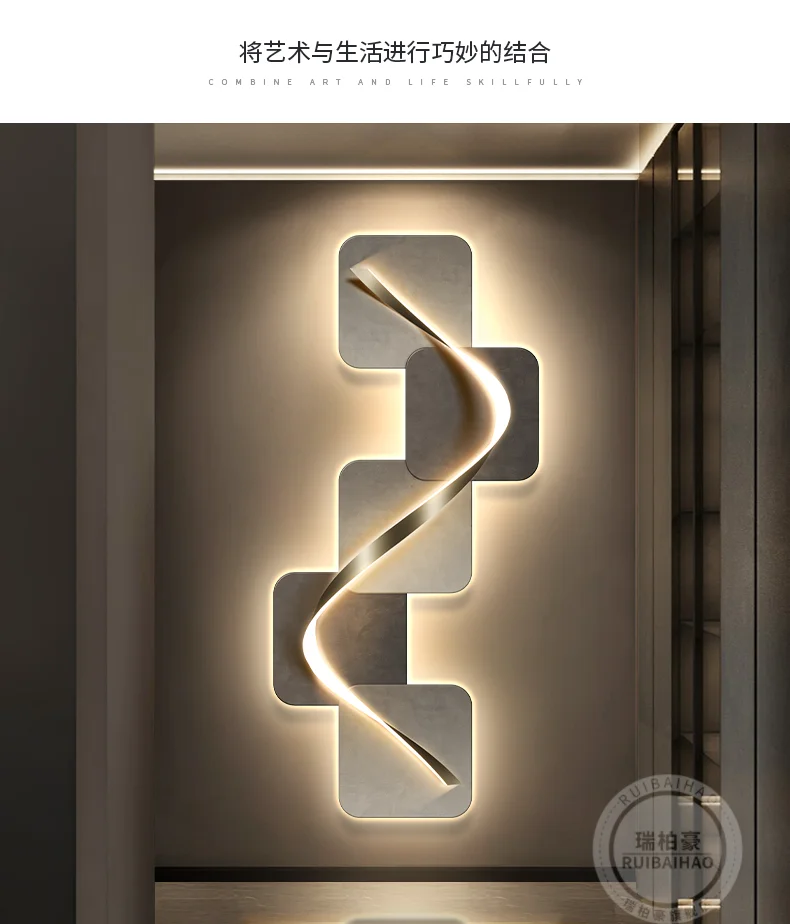 Light luxury entrance hall decoration painting, LED lights, Italian minimalist living room, high-end mural in the corridor