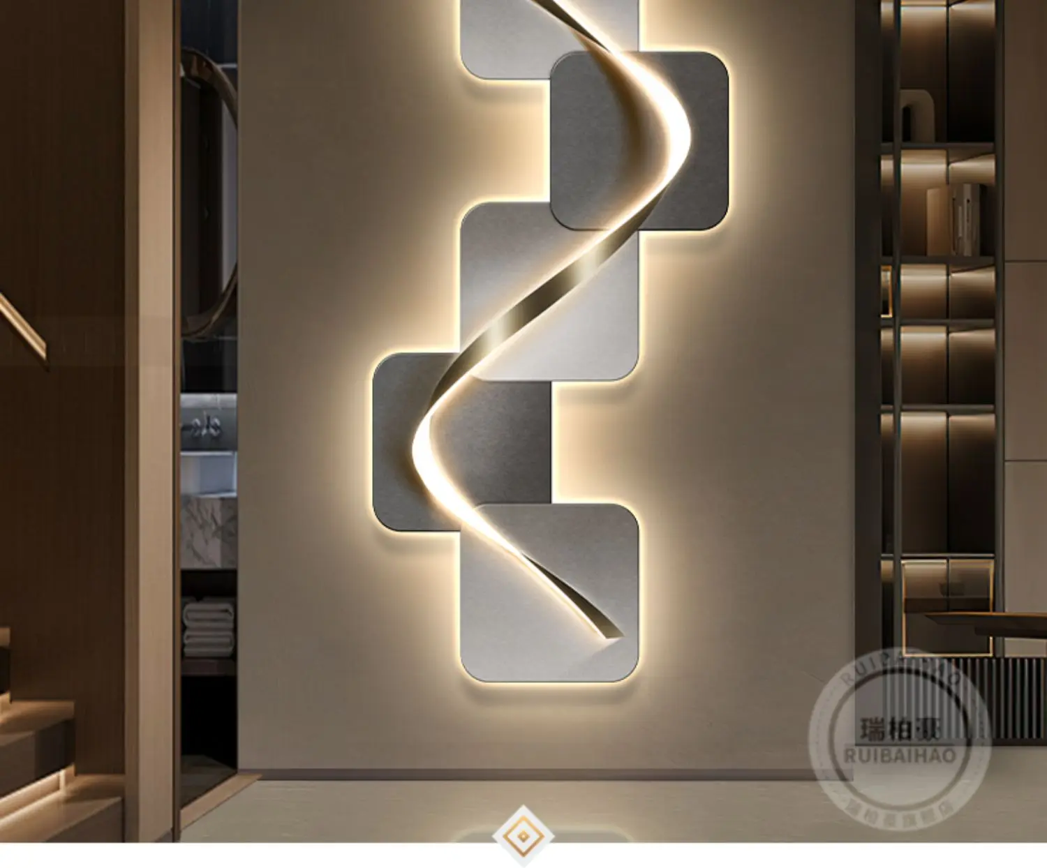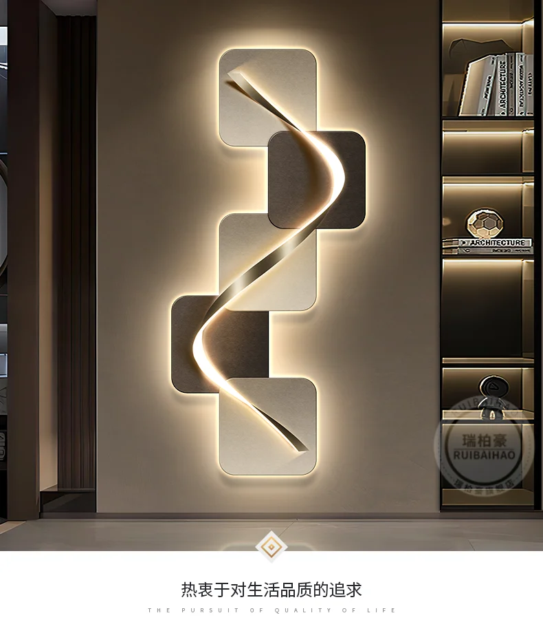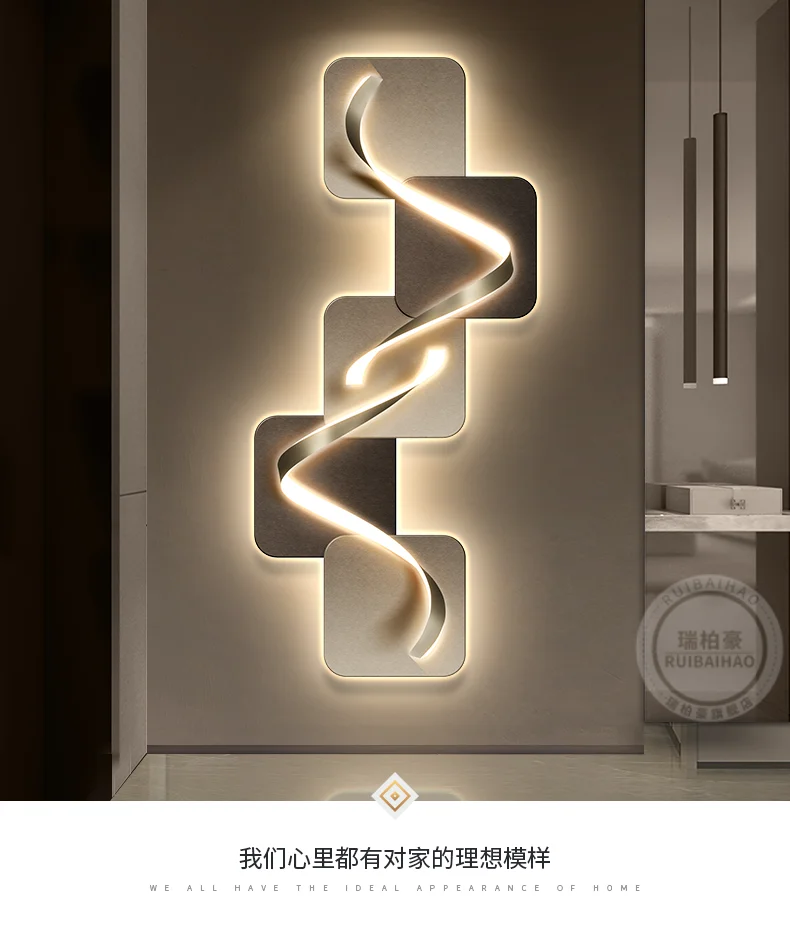 Light luxury entrance hall decoration painting, LED lights, Italian minimalist living room, high-end mural in the corridor