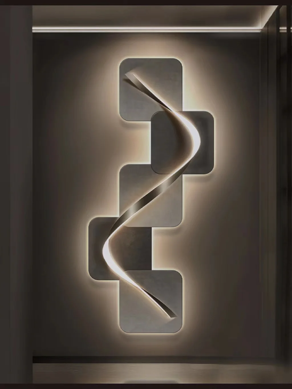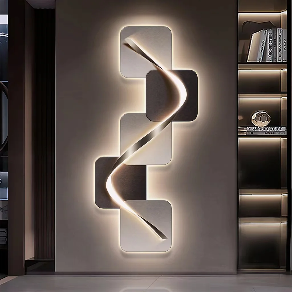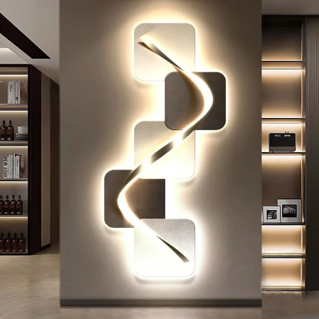 Light luxury entrance hall decoration painting, LED lights, Italian minimalist living room, high-end mural in the corridor