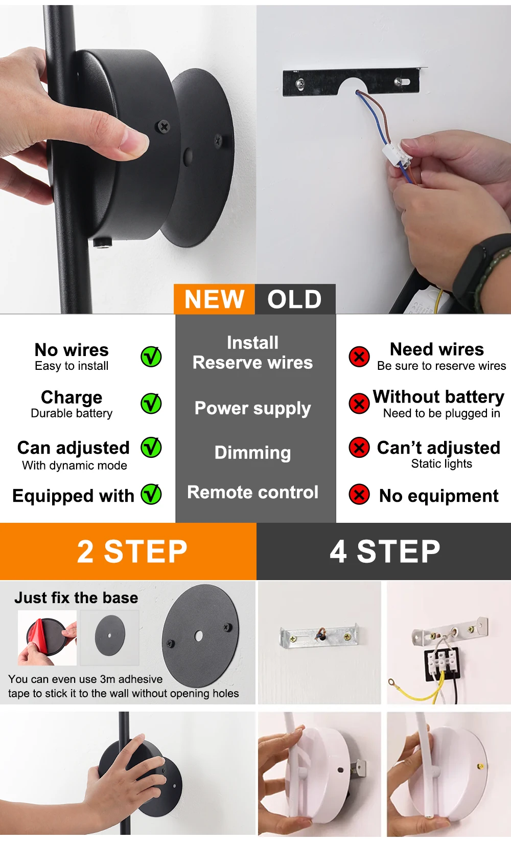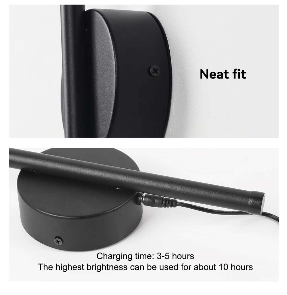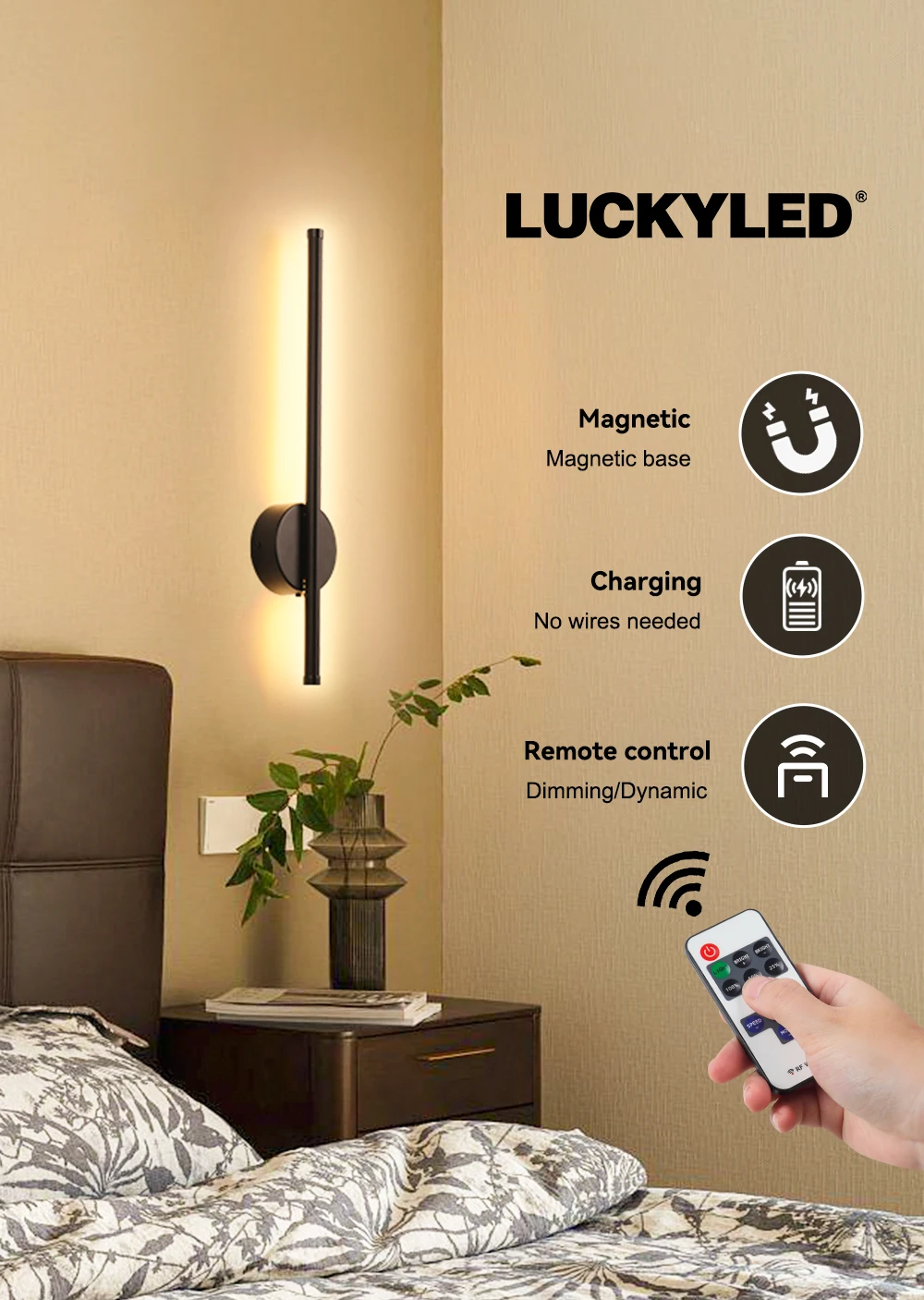 Lukcyled 50cm Rechargeable Cordless LED Wall Lamp Remote Dimming Modern Bedroom/Decor Light Black
