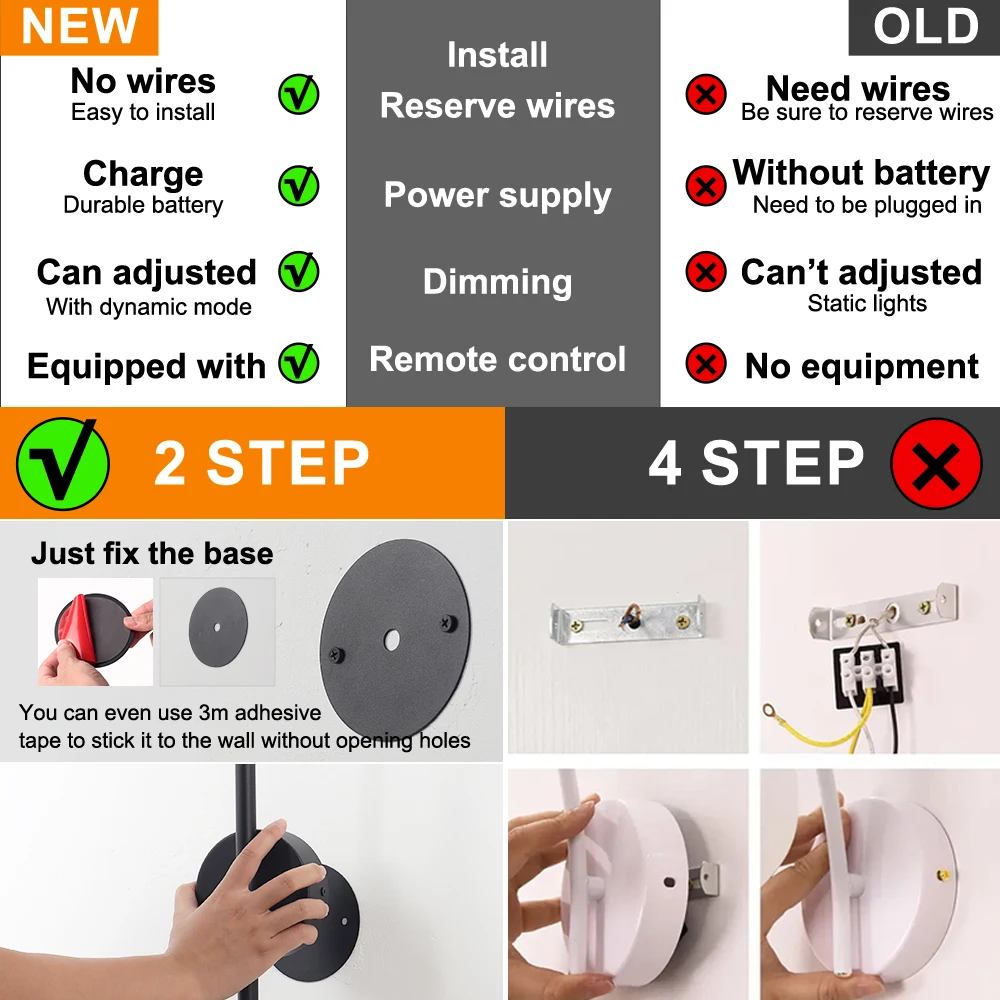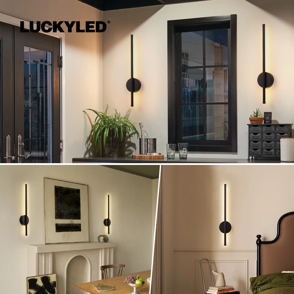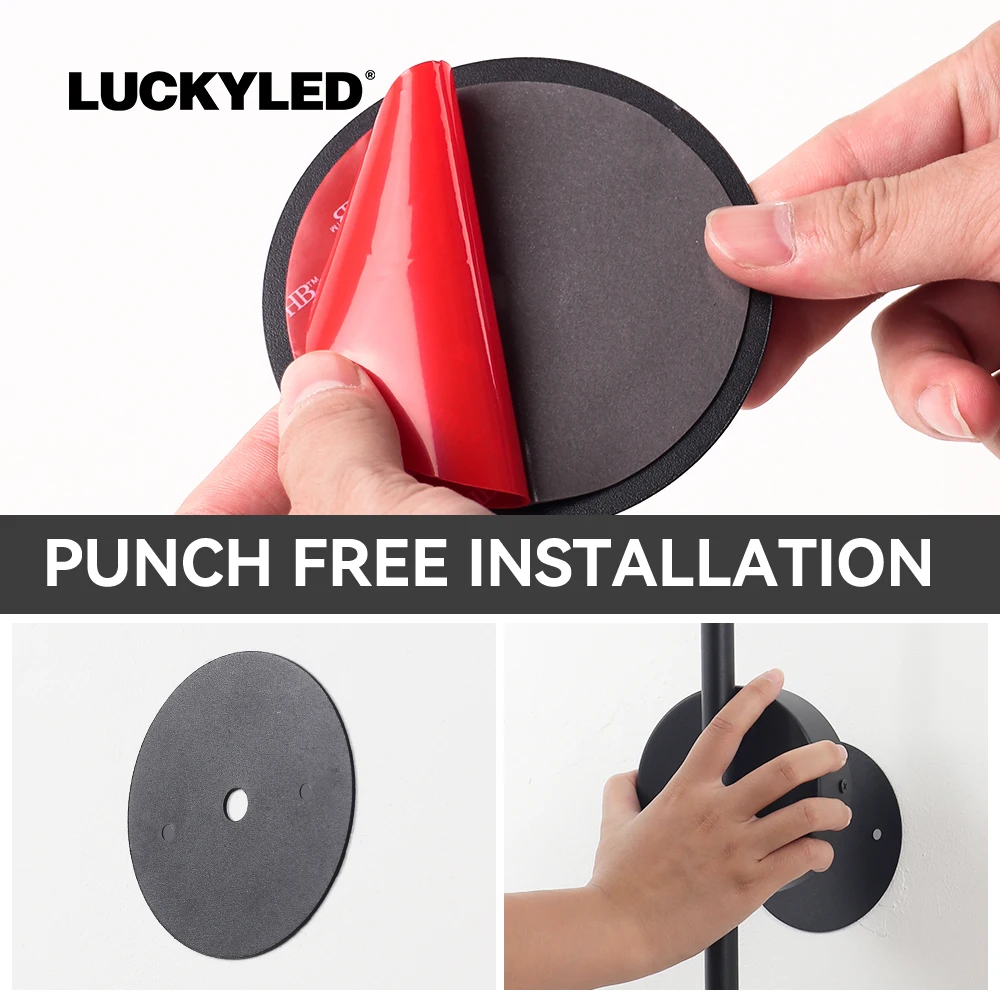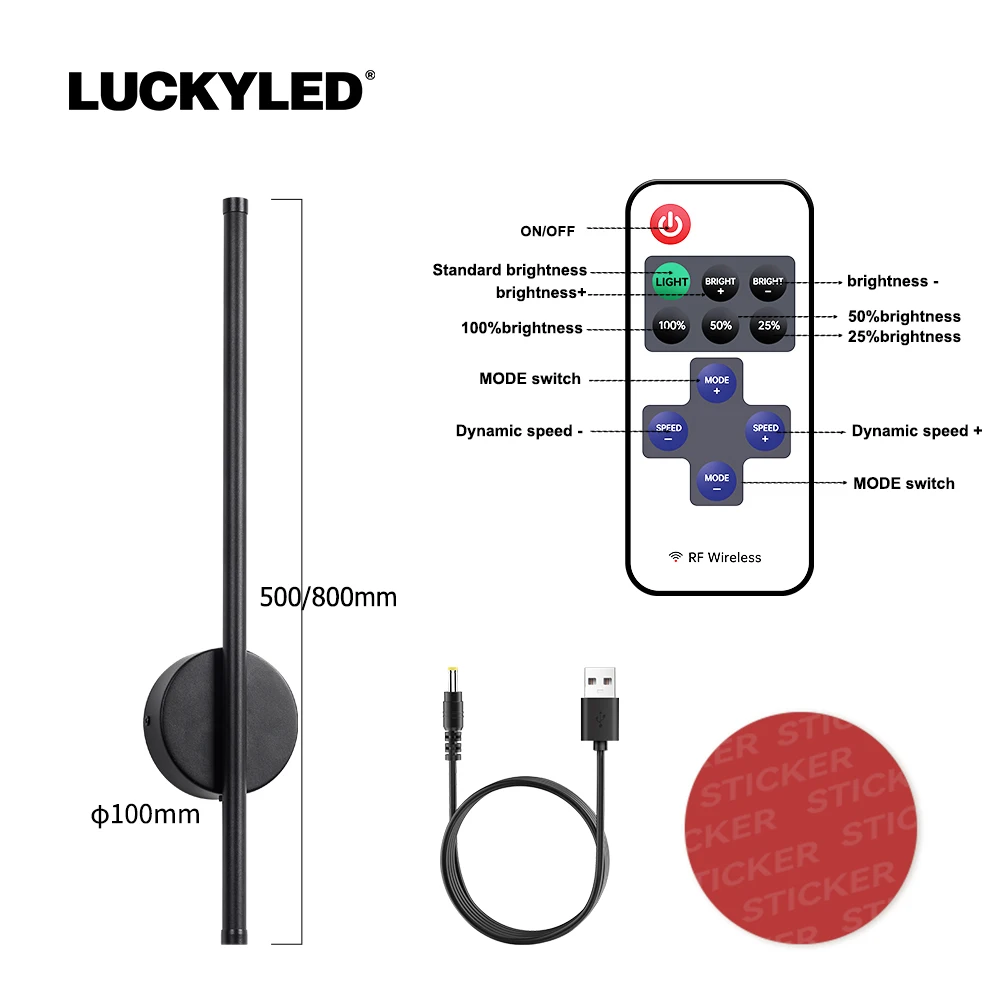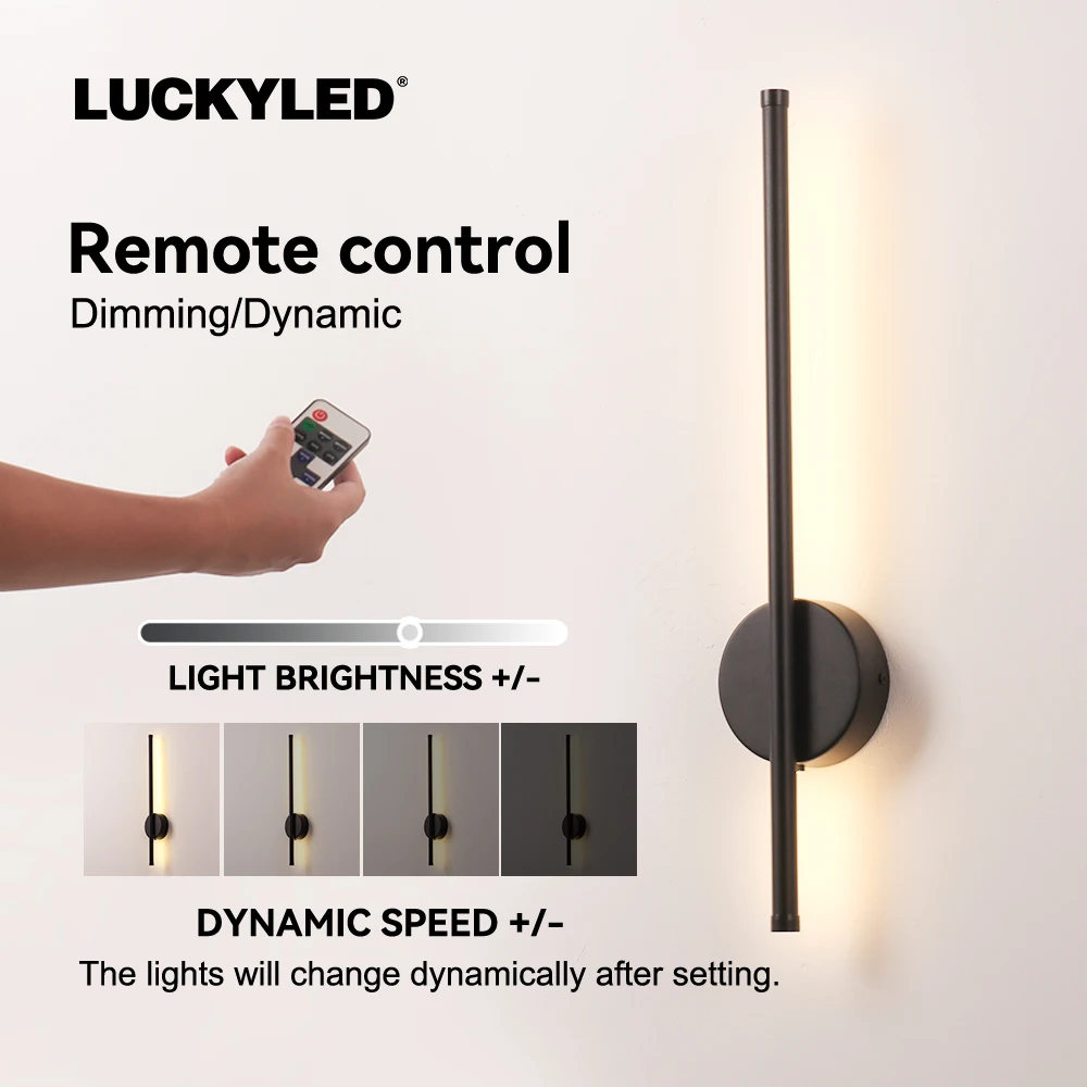 Lukcyled 50cm Rechargeable Cordless LED Wall Lamp Remote Dimming Modern Bedroom/Decor Light Black