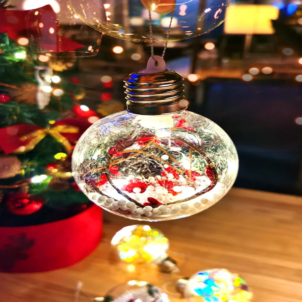 Luminous Christmas Transparent Ball Artificial Plants Xmas Tree Hanging Bauble Ornament Wedding Navidad Gift Party Home Decor
