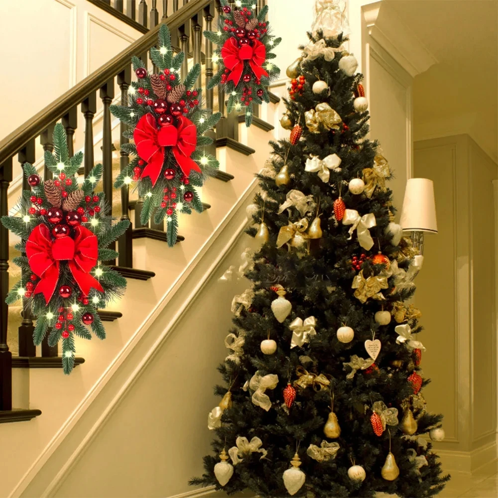 LUSQI Nordic Christmas Stair Decoration Holiday Wreath Suitable For Staircase Mantelpiece Door And Wall Holiday Decorations