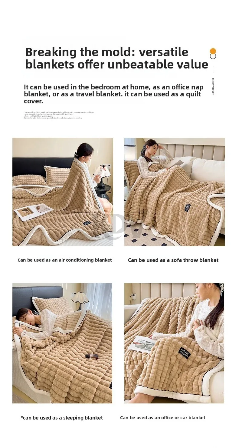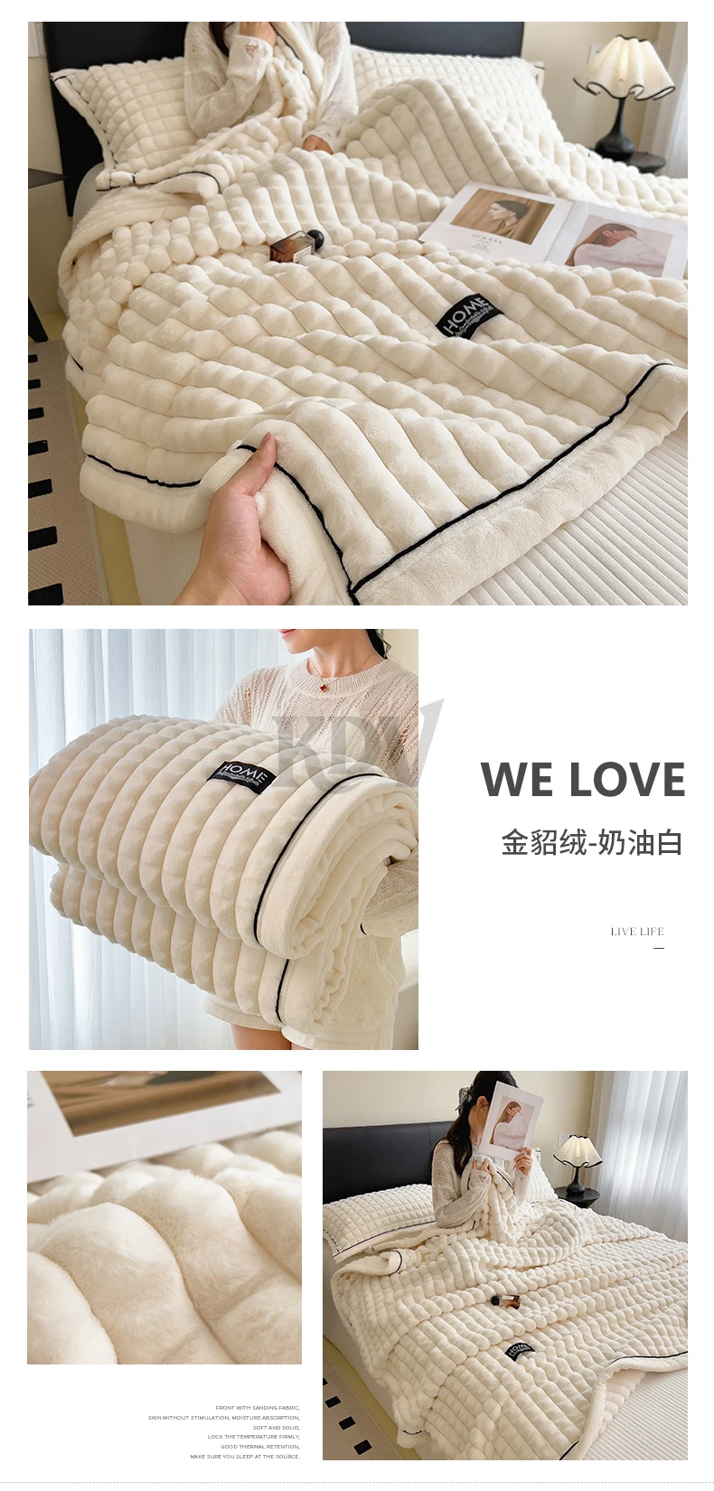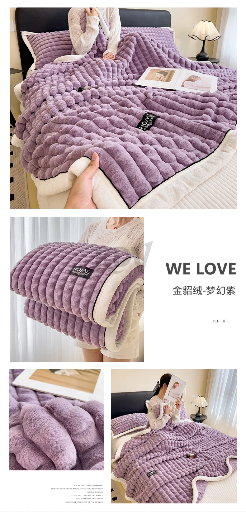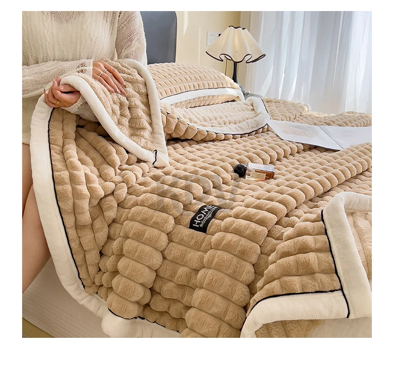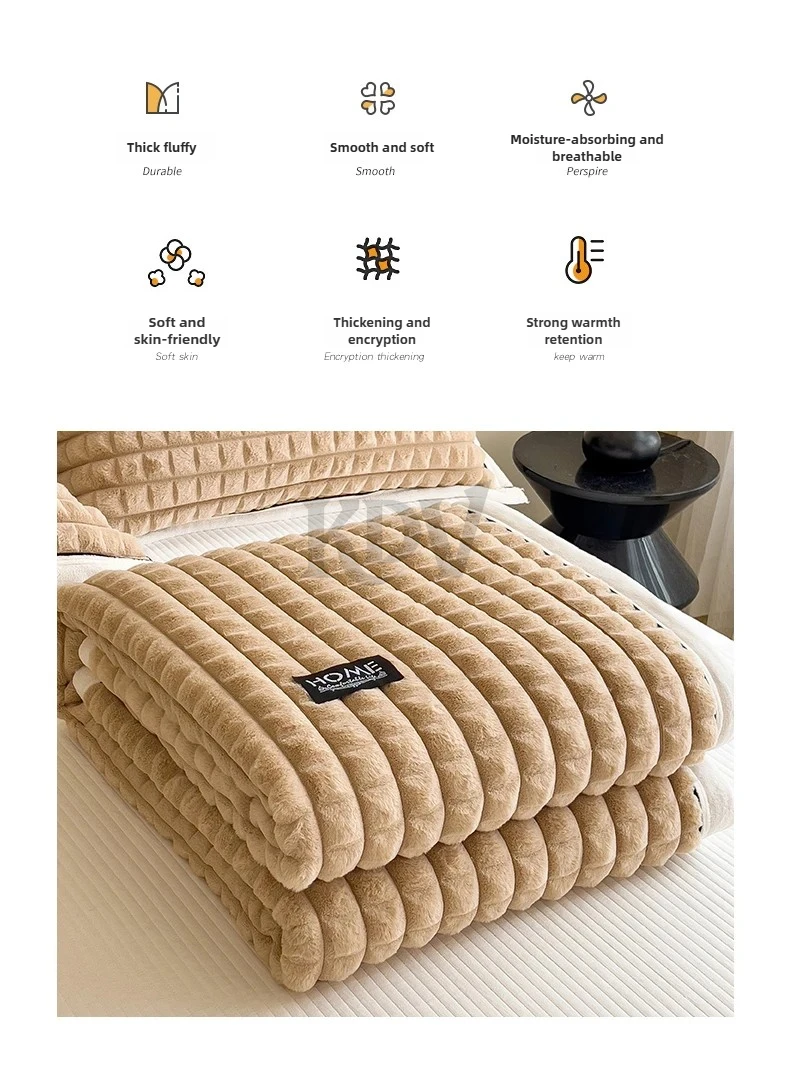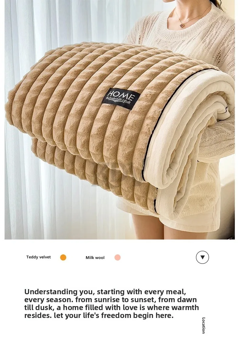 Luxury Double Layer Faux Rabbit Fur Throw Blanket Soft Warm White Striped Office Sofa Blankets and Pillow Cases Fluffy Bed Plaid