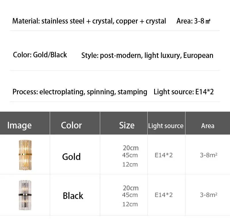 Modern Crystal Wall Lamps for Dining Table Room Corridor Illumination Bedroom Bedside Sconce Led Lights Fixtures Home-appliance