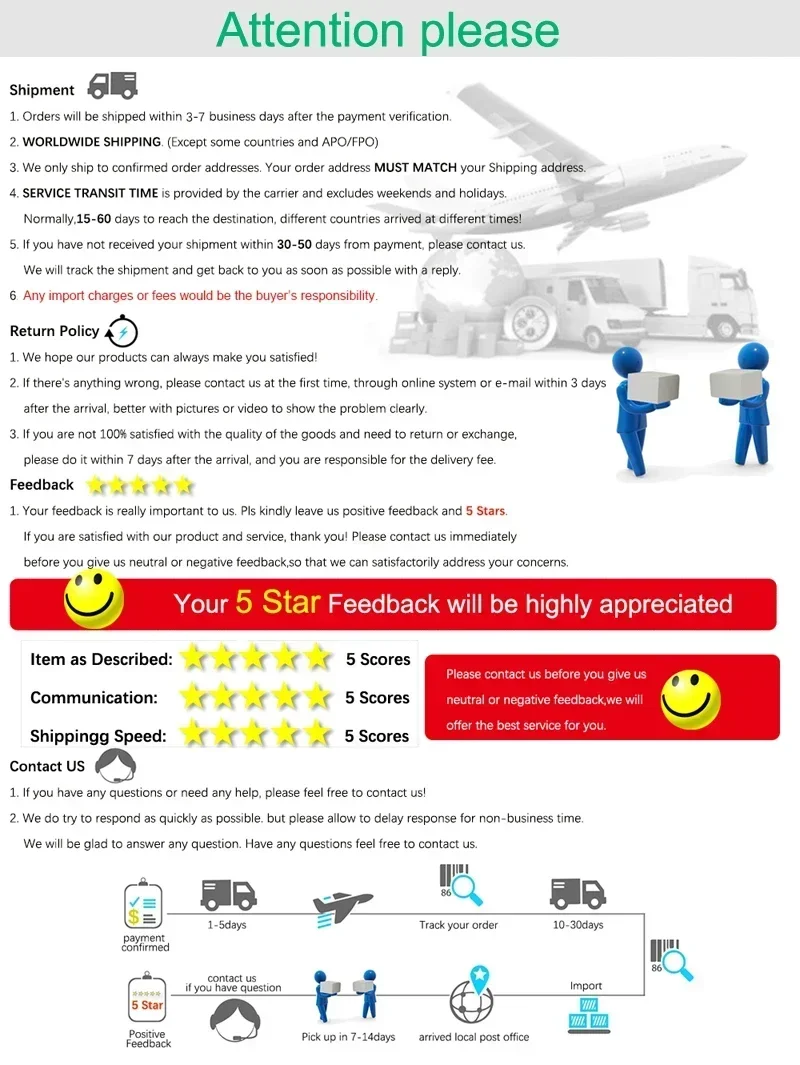 • If you did not receive the product within the guaranteed time( 45 days not including 2-5 day processing) you can request a refund or a reshipment.